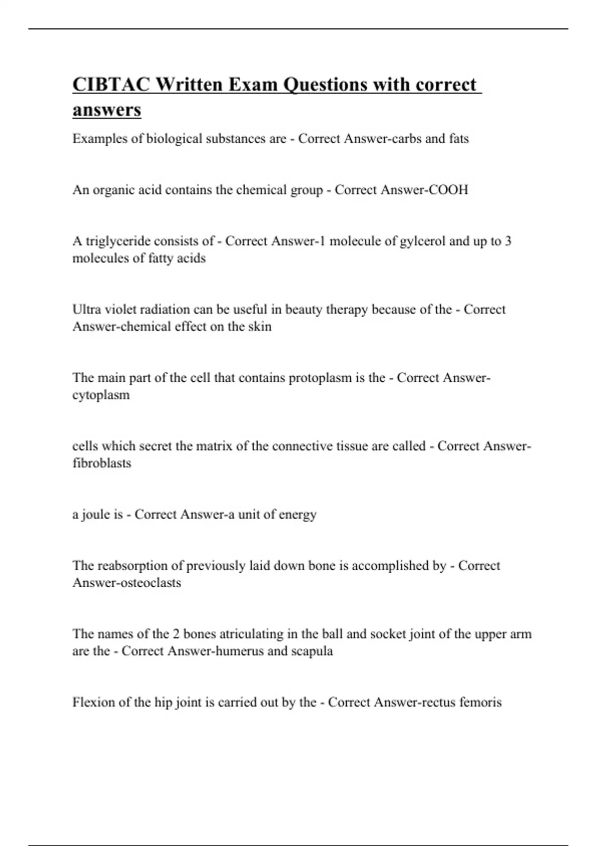 CIBTAC Written Exam Questions with correct answers