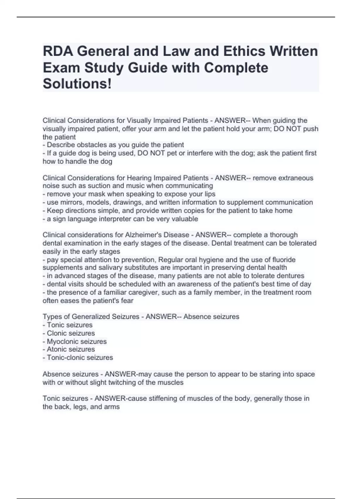 RDA General and Law and Ethics Written Exam Study Guide with Complete Solutions!RDA General and Law and Ethics Written Exam Study Guide with Complete Solutions!RDA General and Law and Ethics Written Exam Study Guide with Complete Solutions!RDA General and Law and Ethics Written Exam Study Guide with Complete Solutions!RDA General and Law and Ethics Written Exam Study Guide with Complete Solutions!RDA General and Law and Ethics Written Exam Study Guide with Complete Solutions!RDA General and Law and Ethics Written Exam Study Guide with Complete Solutions!RDA General and Law and Ethics Written Exam Study Guide with Complete Solutions!