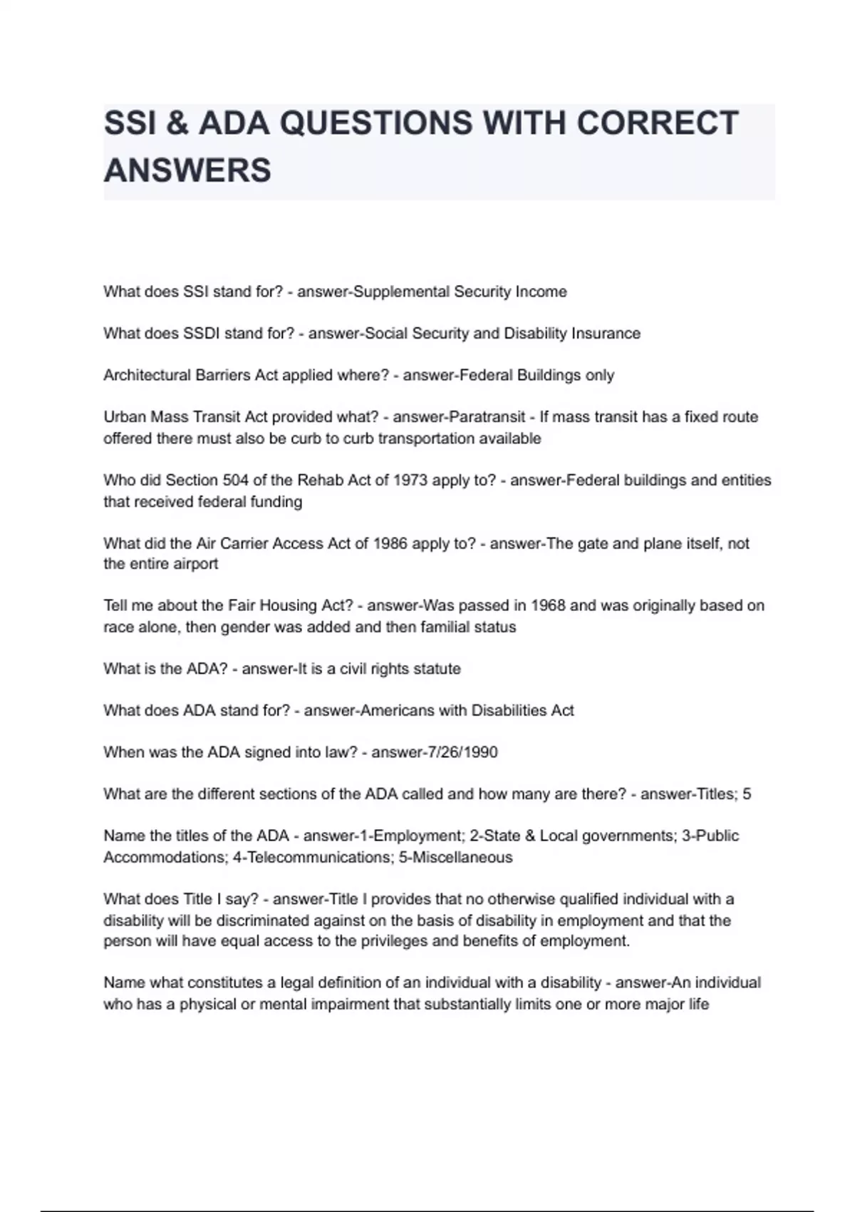 SSI & ADA QUESTIONS WITH CORRECT ANSWERS