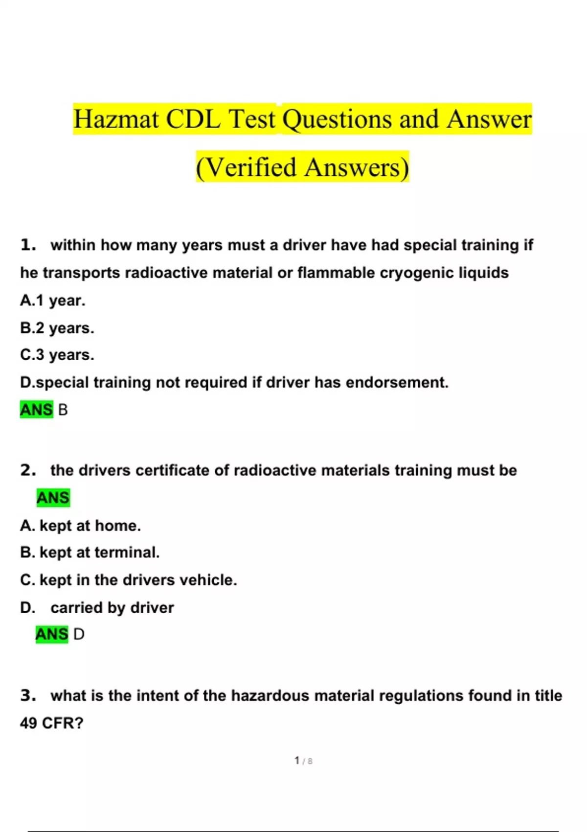 Hazmat CDL Test Questions and Answers (2024 / 2025) (Verified Answers)