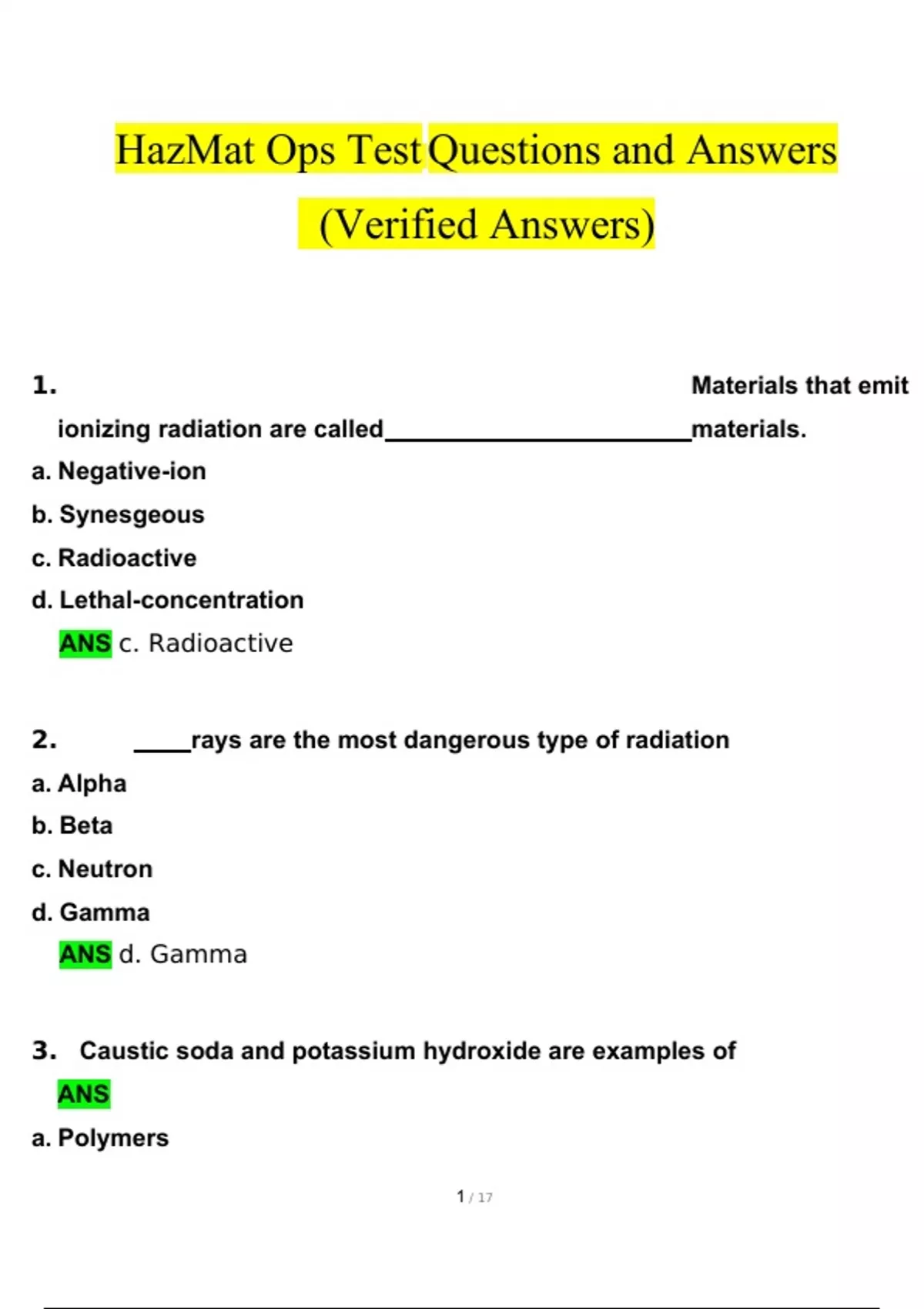HazMat Ops Test Questions and Answers (2024 / 2025) (Verified Answers)HazMat Ops Test Questions and Answers (2024 / 2025) (Verified Answers)HazMat Ops Test Questions and Answers (2024 / 2025) (Verified Answers)HazMat Ops Test Questions and Answers (2024 / 2025) (Verified Answers)HazMat Ops Test Questions and Answers (2024 / 2025) (Verified Answers)