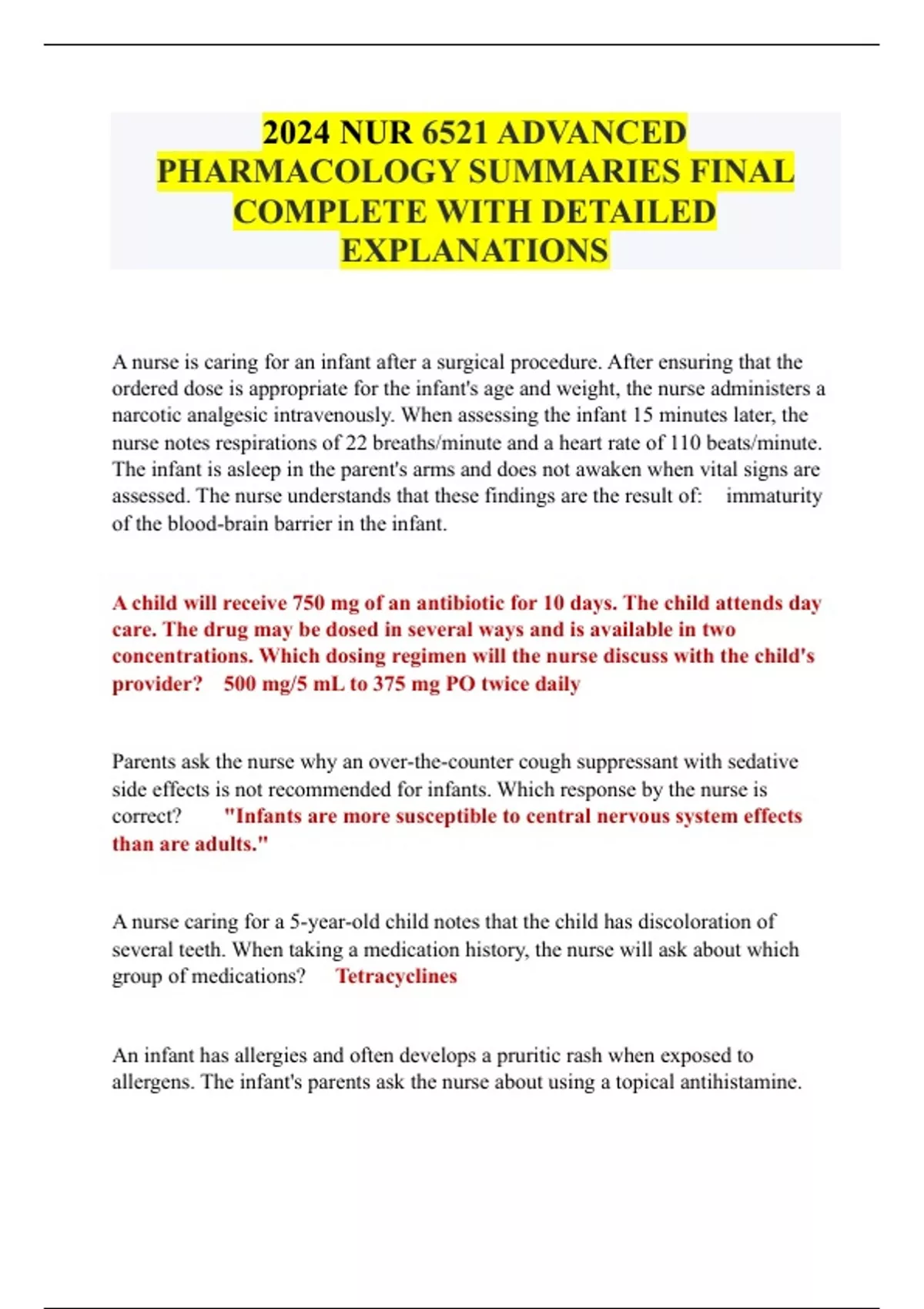 2024 NUR 6521 ADVANCED PHARMACOLOGY SUMMARIES FINAL COMPLETE WITH DETAILED EXPLANATIONS 2024 NUR 6521 ADVANCED PHARMACOLOGY SUMMARIES FINAL COMPLETE WITH DETAILED EXPLANATIONS 2024 NUR 6521 ADVANCED PHARMACOLOGY SUMMARIES FINAL COMPLETE WITH DETAILED EXPLANATIONS