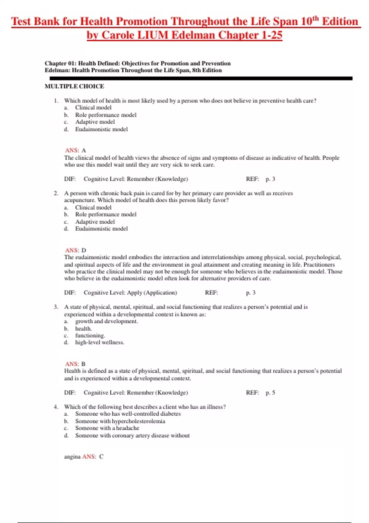 test bank for health promotion throughout the life