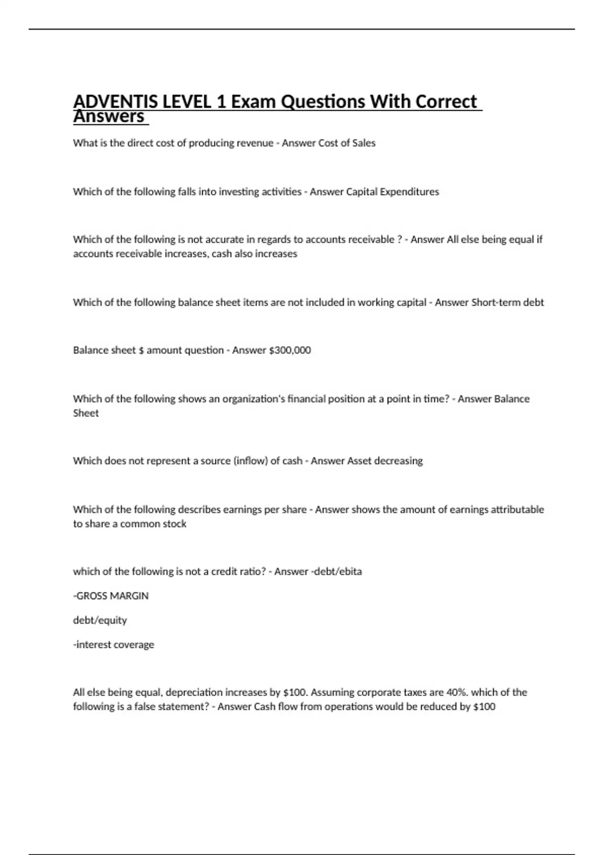 ADVENTIS LEVEL 1 Exam Questions With Correct Answers