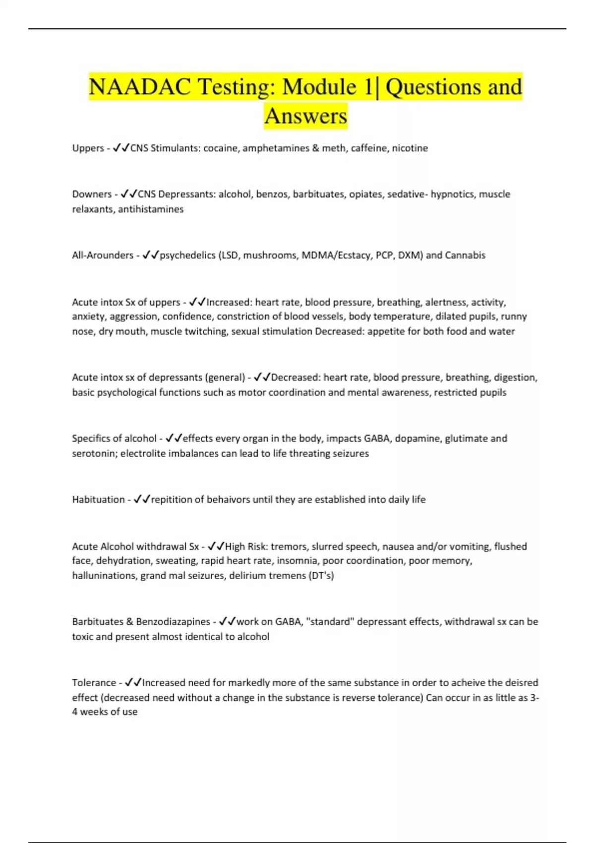 NAADAC Testing: Module 1| Questions and Answers