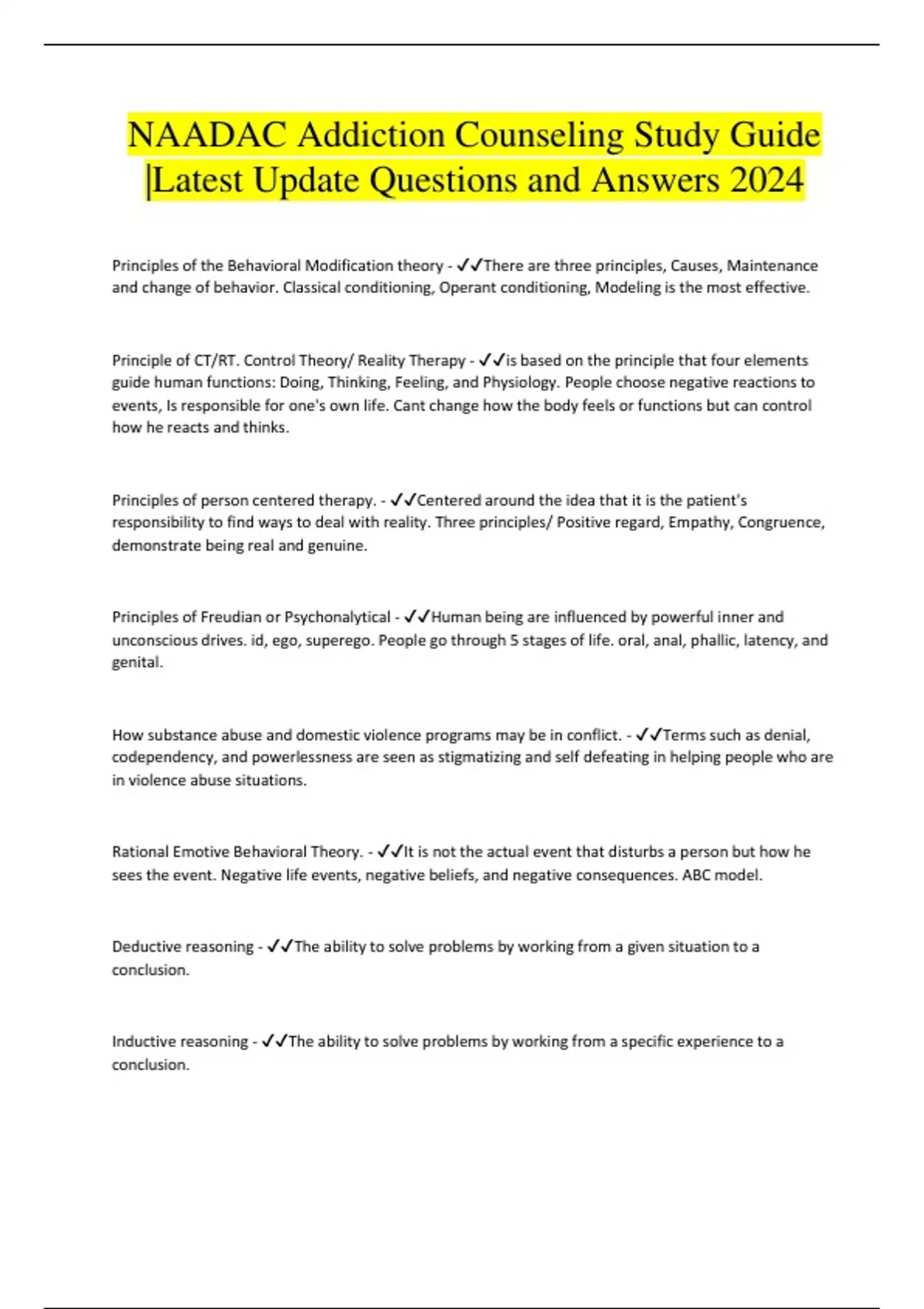 NAADAC Addiction Counseling Study Guide |Latest Update Questions and Answers 2024