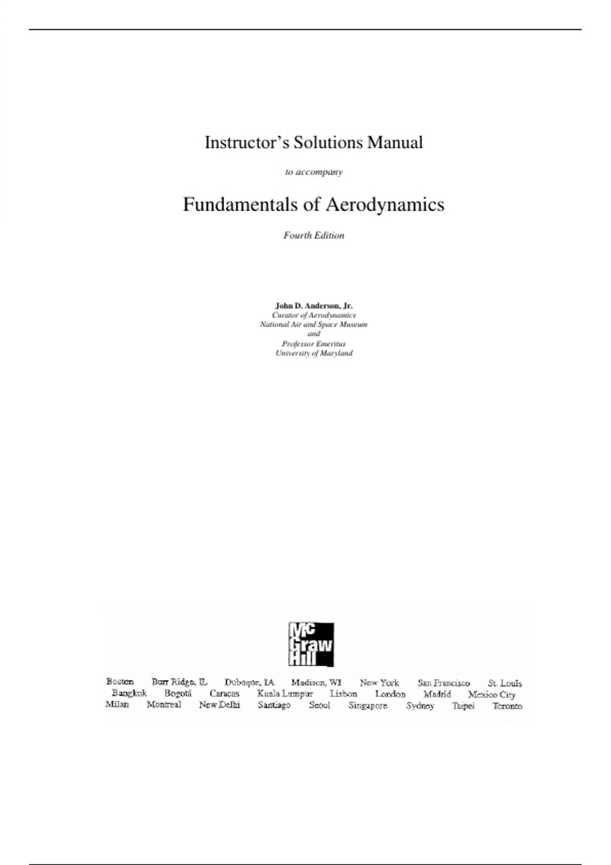 Instructor’s Solutions Manual to accompany Fundamentals of Aerodynamics Fourth Edition John D. Anderson, Jr. Curator of Aerodynamics National Air and Space Museum and Professor Emeritus University of Maryland