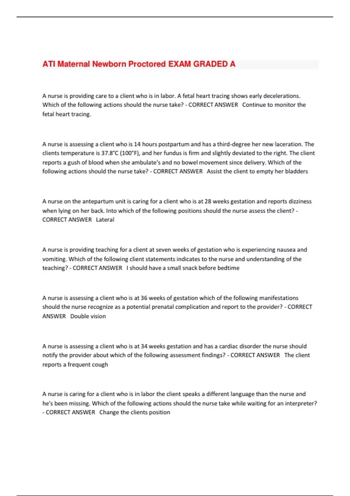 ATI Maternal Newborn Proctored EXAM GRADED A