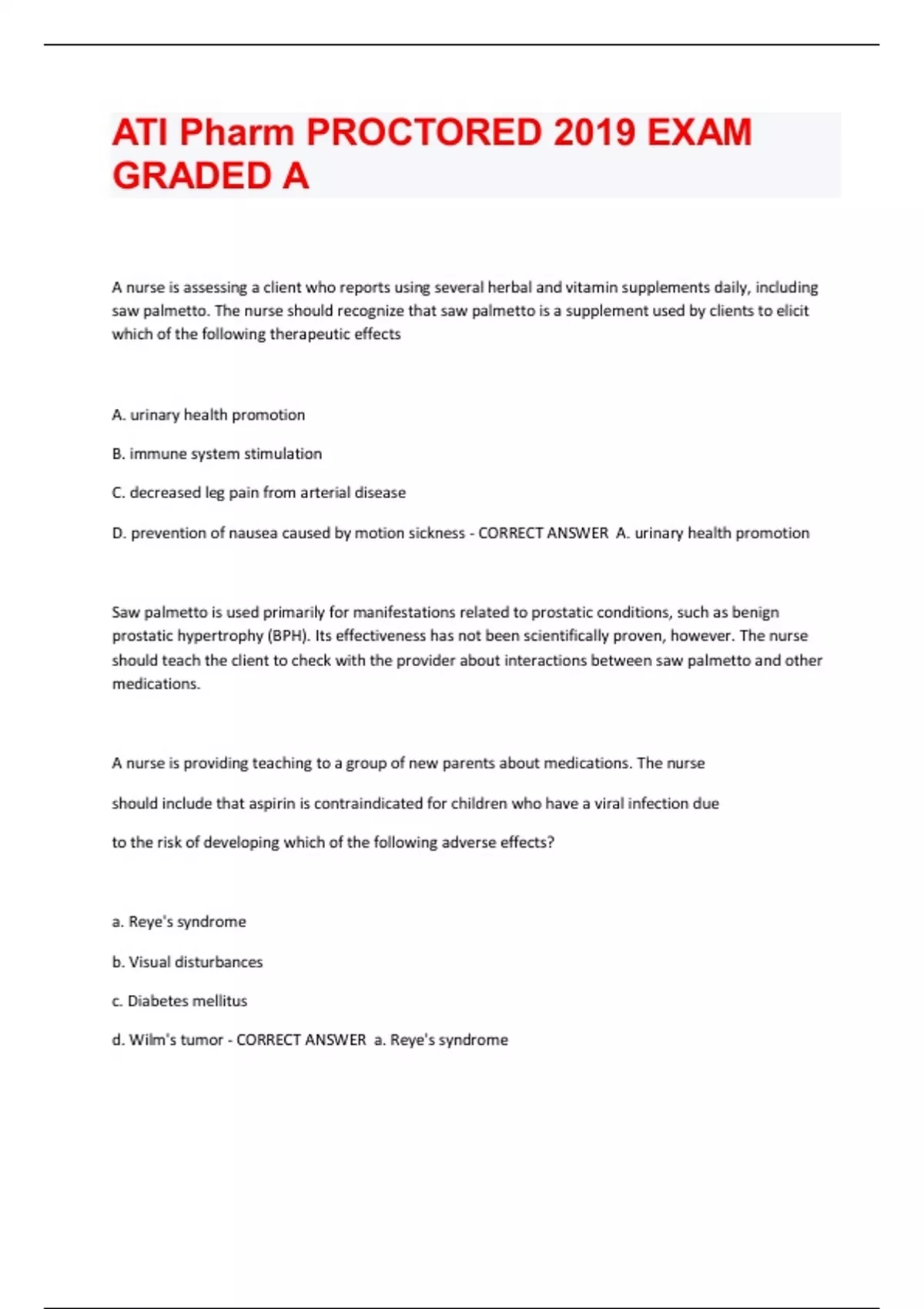 ATI Pharm PROCTORED 2019 EXAM GRADED A