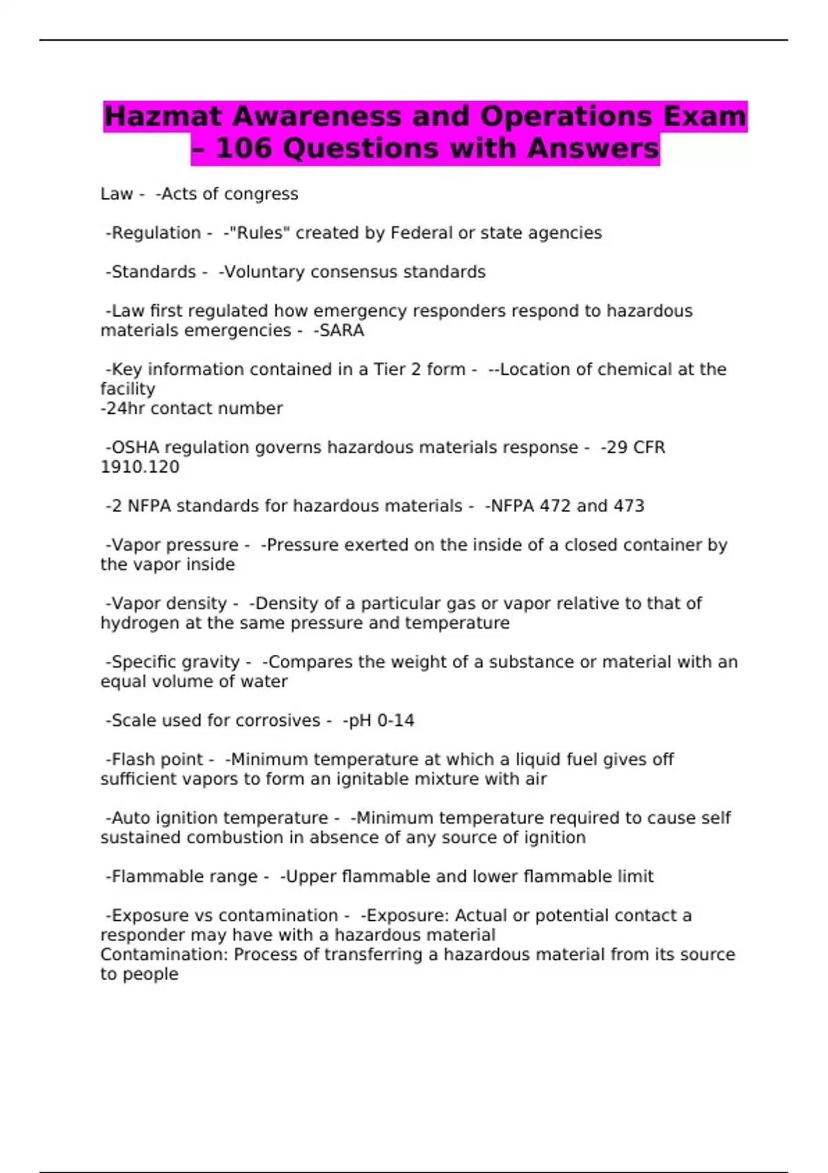 Hazmat Awareness and Operations Exam – 106 Questions with Answers