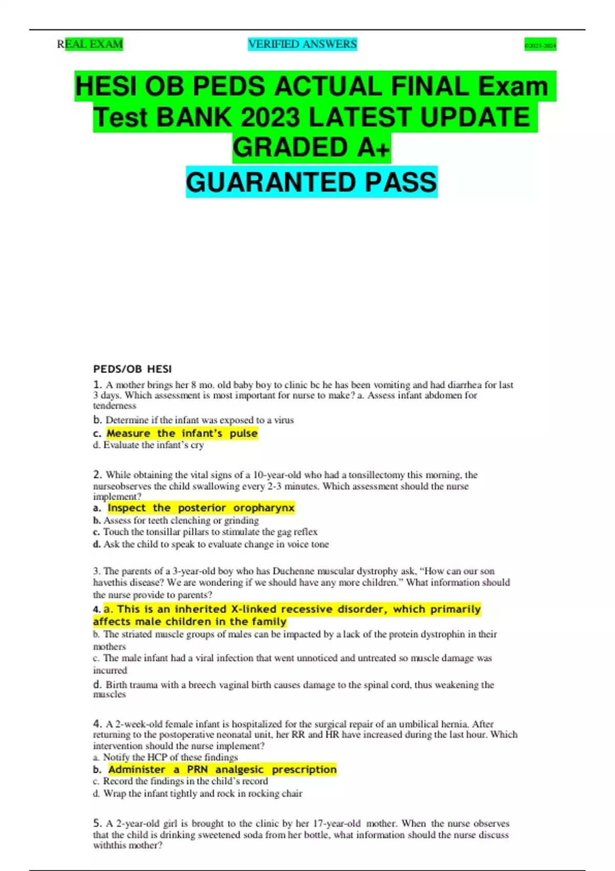 HESI OB PEDS ACTUAL FINAL Exam Test BANK 2023 LATEST UPDATE GRADED A+ GUARANTED PASS