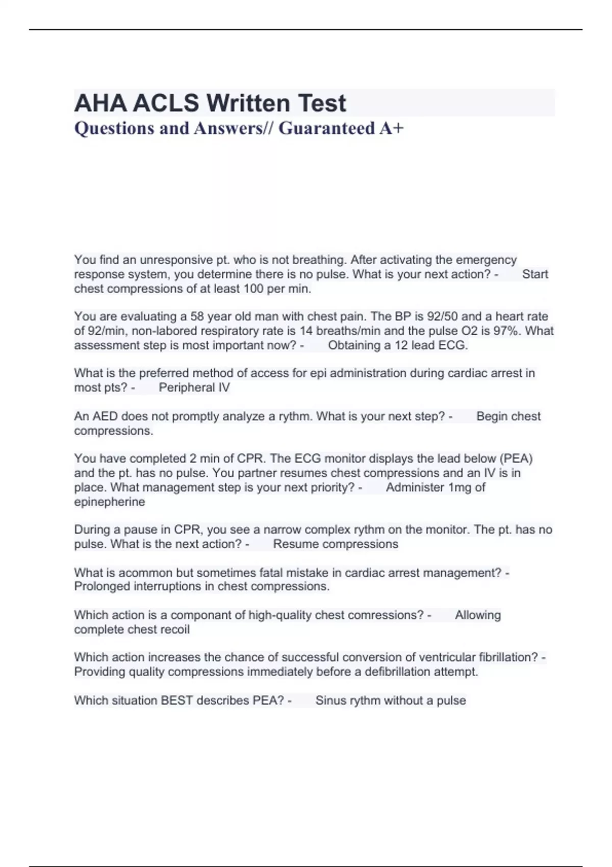 AHA ACLS Written Test Questions and Answers// Guaranteed A+