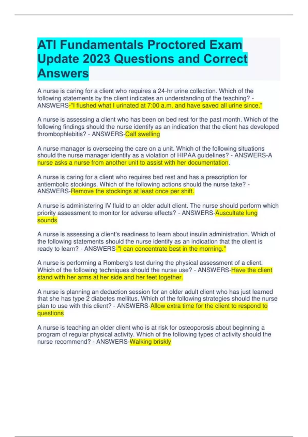 ATI Fundamentals Proctored Exam Update 2023 Questions and Correct Answers