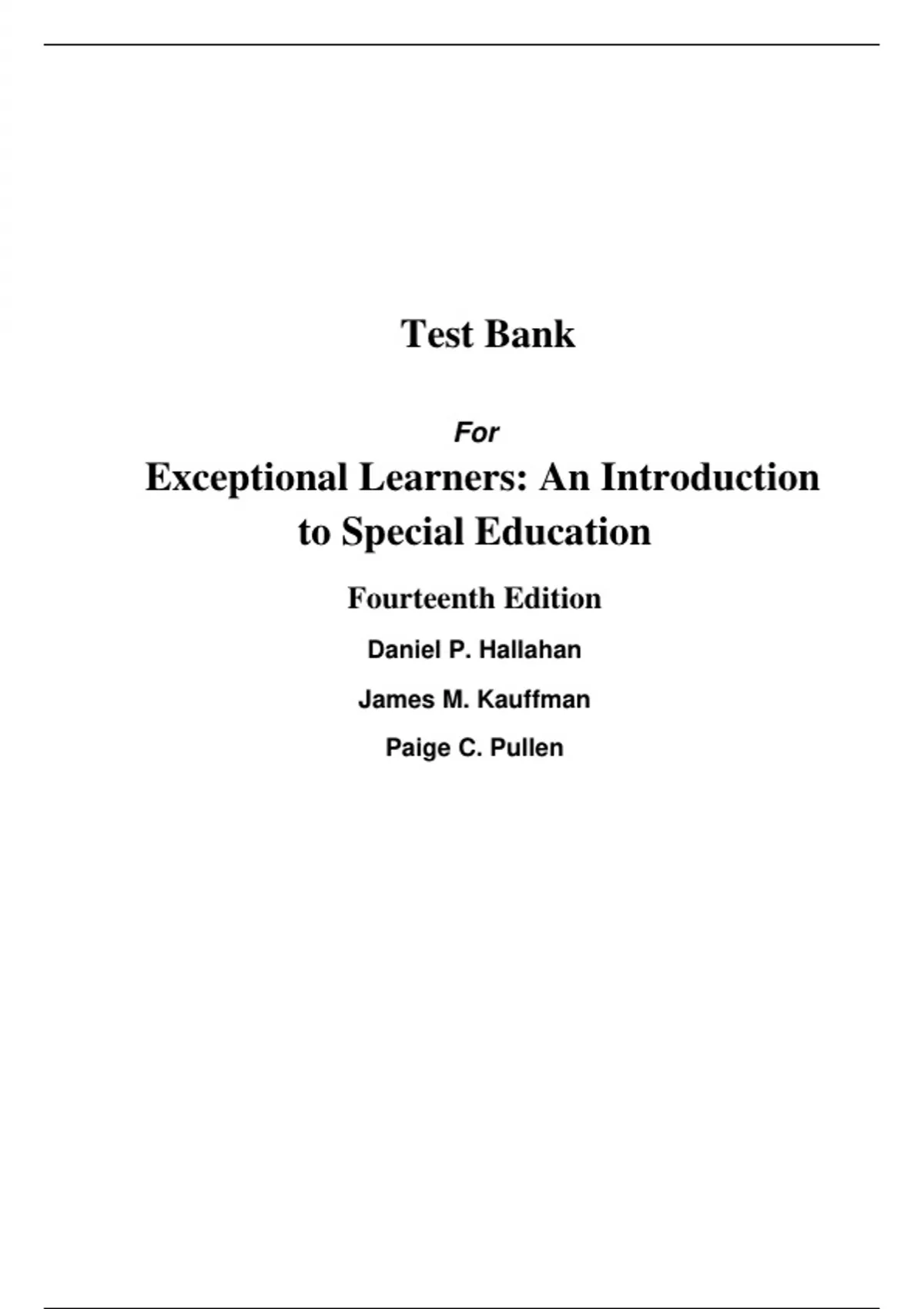 Test Bank For Exceptional Learners An Introduction to Special Education 14th Edition By Daniel Hallahan, James Kauffman, Paige Pullen (All Chapters, 100% Original Verified, A+ Grade)