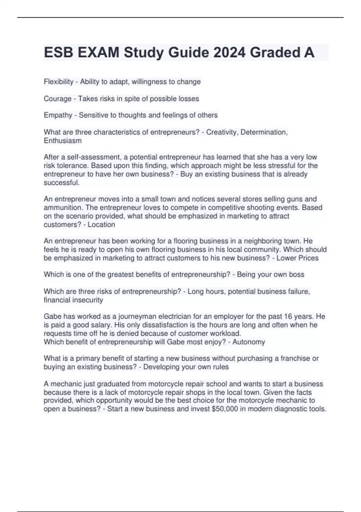Which are three risks of entrepreneurship? - Long hours, potential business failure,