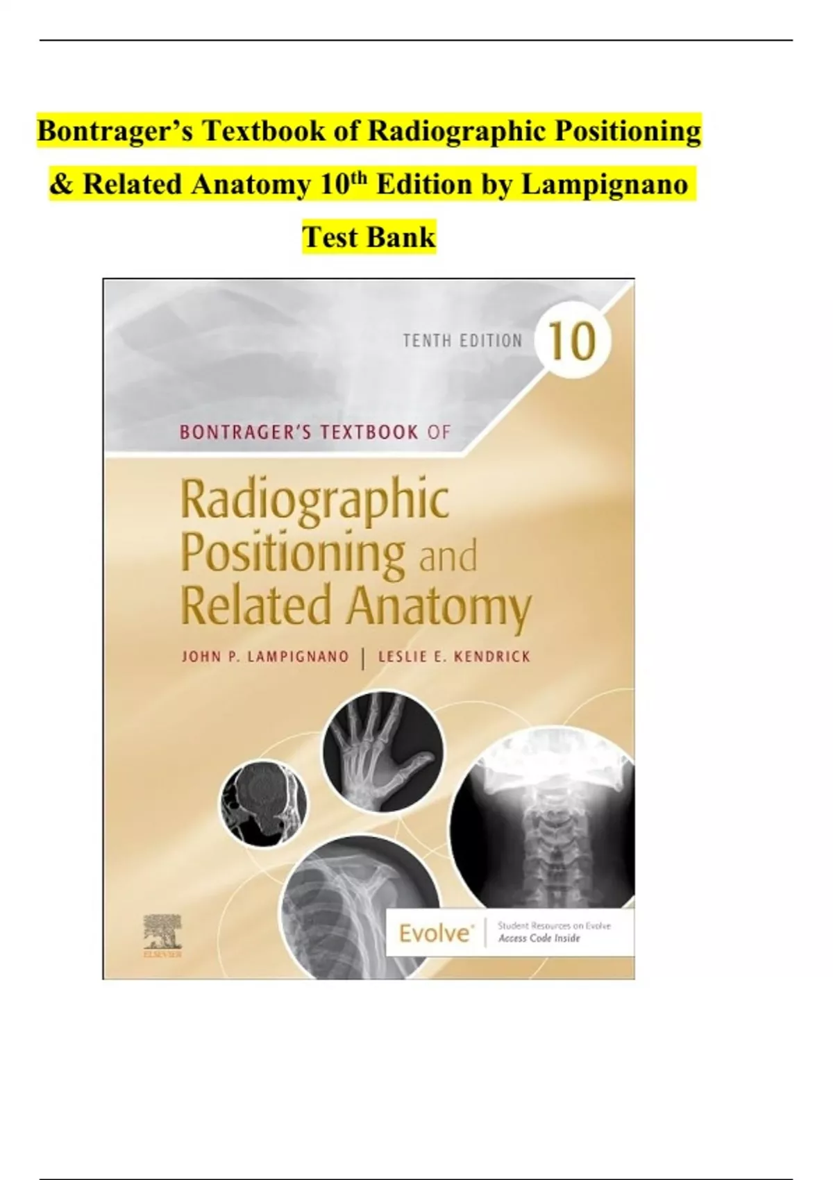 Bontrager’s Textbook of Radiographic Positioning & Related Anatomy 10th Edition by Lampignano Test Bank - Q&A Explained (Rated A+) Latest 2024