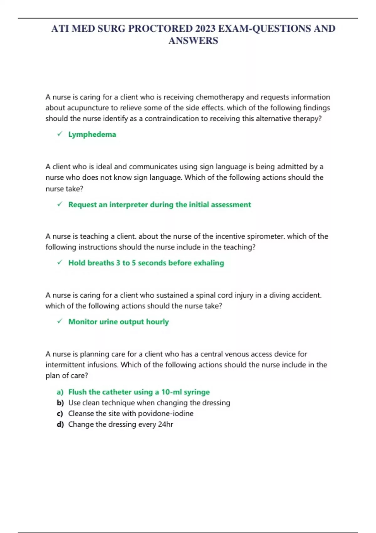 ATI MED SURG PROCTORED EXAM-QUESTIONS AND ANSWERS/ATI MED SURG PROCTORED EXAM-QUESTIONS AND ANSWERS/ATI MED SURG PROCTORED EXAM-QUESTIONS AND ANSWERS