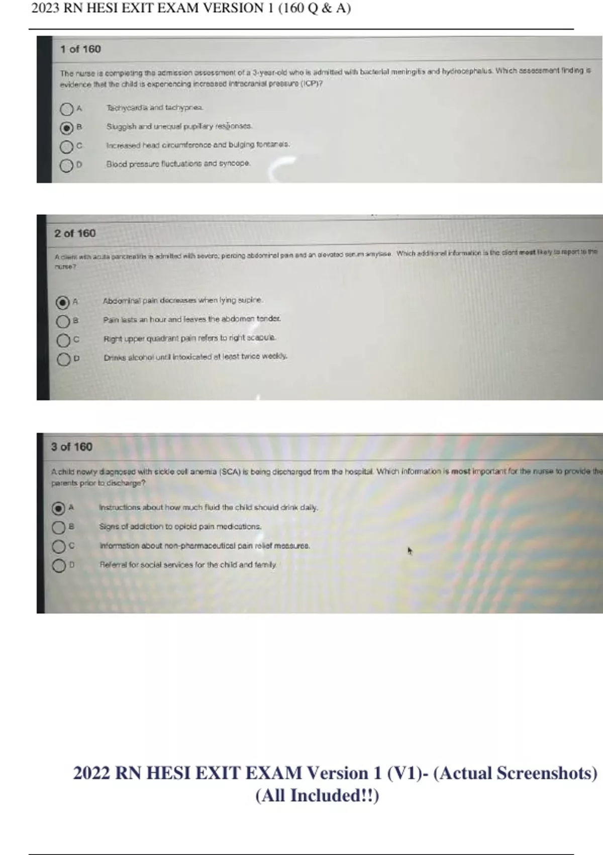 RN HESI EXIT EXAM VERSION 1 (160 Q & A)/RN HESI EXIT EXAM VERSION 1 (160 Q & A)/RN HESI EXIT EXAM VERSION 1 (160 Q & A)
