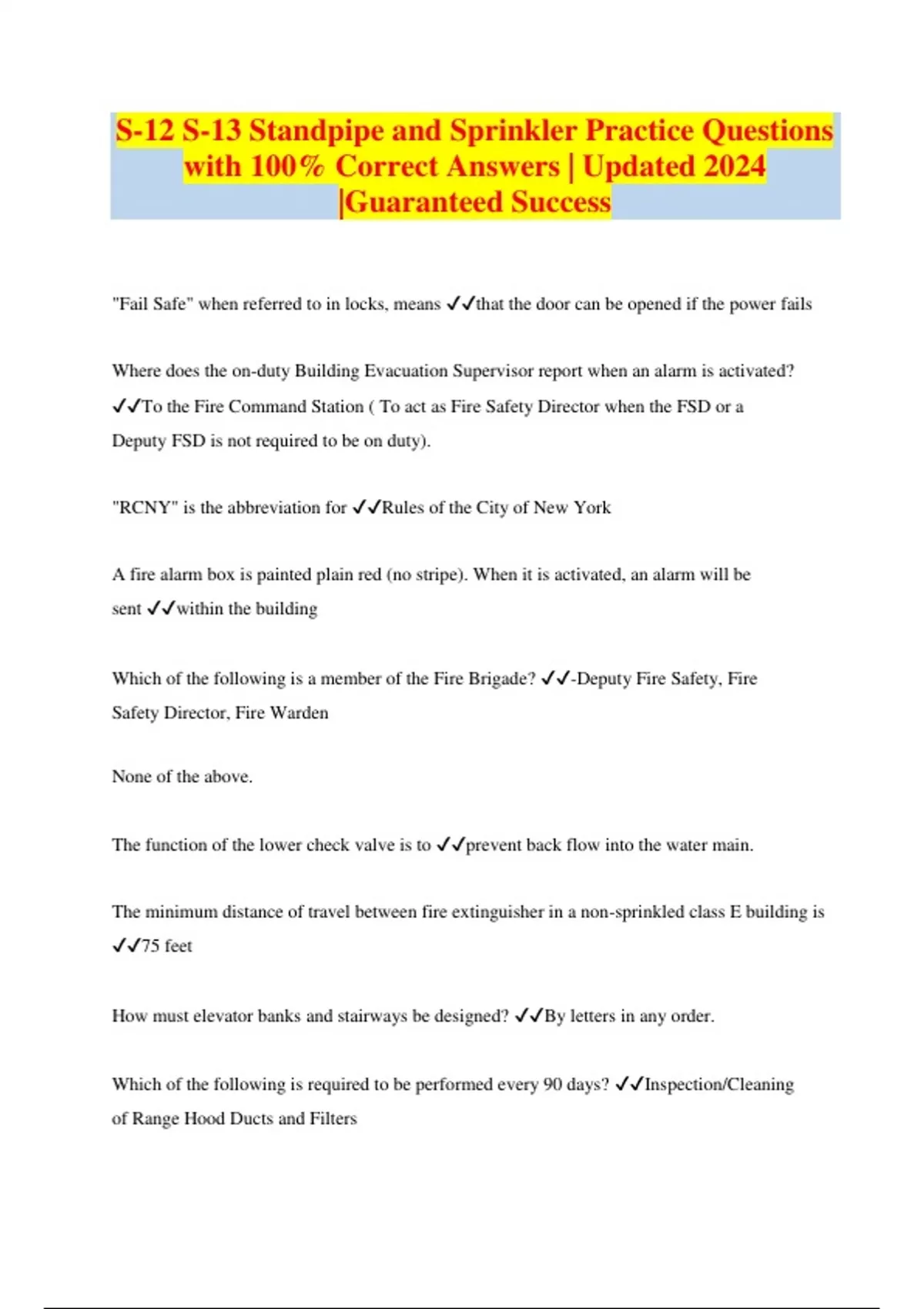 S-12 S-13 Standpipe and Sprinkler Practice Questions with 100% Correct Answers | Updated 2024 |Guaranteed Success