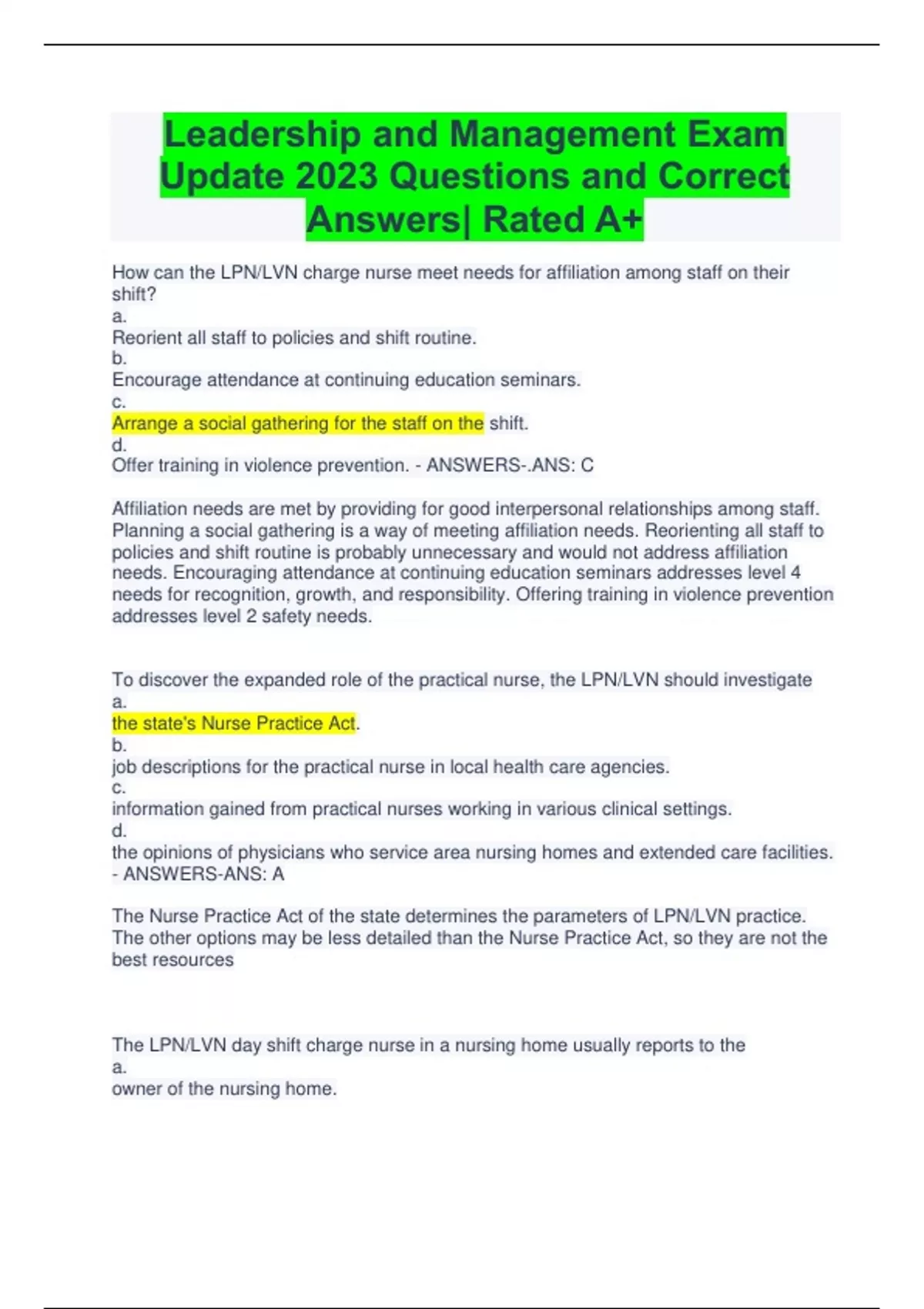 leadership and management exam update 2023 questi