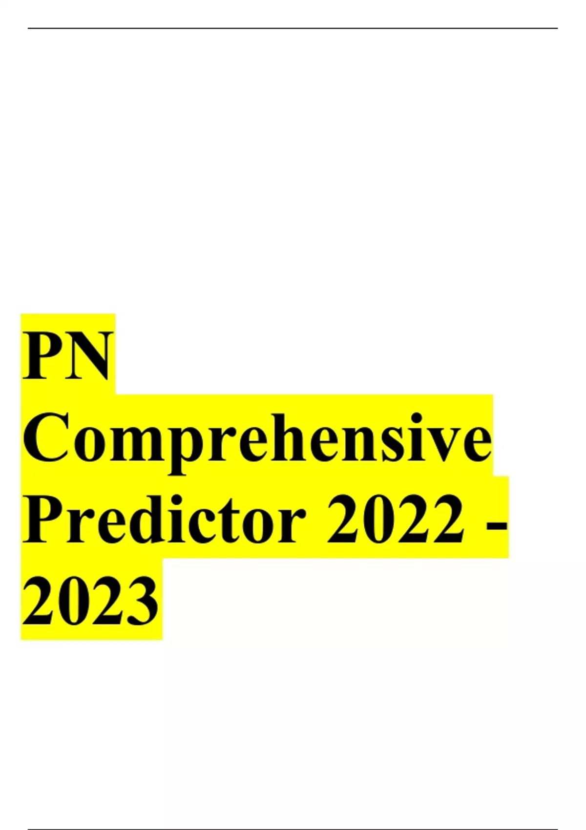 ATI PN Comprehensive Predictor 2022/2023 A nurse is caring for four clients. Which of the following client statements should the nurse attend to first? - "My heartburn pain is going into my jaw now." A nurse is caring for a client who is receiving mechanical ventilation via an endotracheal tube. Which of the following actions should the nurse take? - Perform oral care every 2 hr. A nurse is caring for a client who is receiving warfarin 5 mg PO daily. Which of the following laboratory values should the nurse check prior to administering the medication? - - PT - INR A nurse is collecting data from a client who is at 9 weeks of gestation and has hyperemesis gravidarum. Which of the following findings should the nurse expect? - Weight loss A nurse is reinforcing teaching with a client about the importance of a low sodium diet. Which of the following foods should the nurse recommend as the best choice to include in a low sodium diet? - 2 tbsp of peanut butter A nurse is collecting data from an 18 month old toddler at a well child visit. Which of the following findings should the nurse report to the provider? - The toddler can say four words. A nurse is collecting data from a client who has diabetes mellitus. Which of the following findings indicates that the client might be experiencing diabetic ketoacidosis? - Kussmaul respirations A nurse is reinforcing teaching with a client who has a permanent pacemaker in place. Which of the f