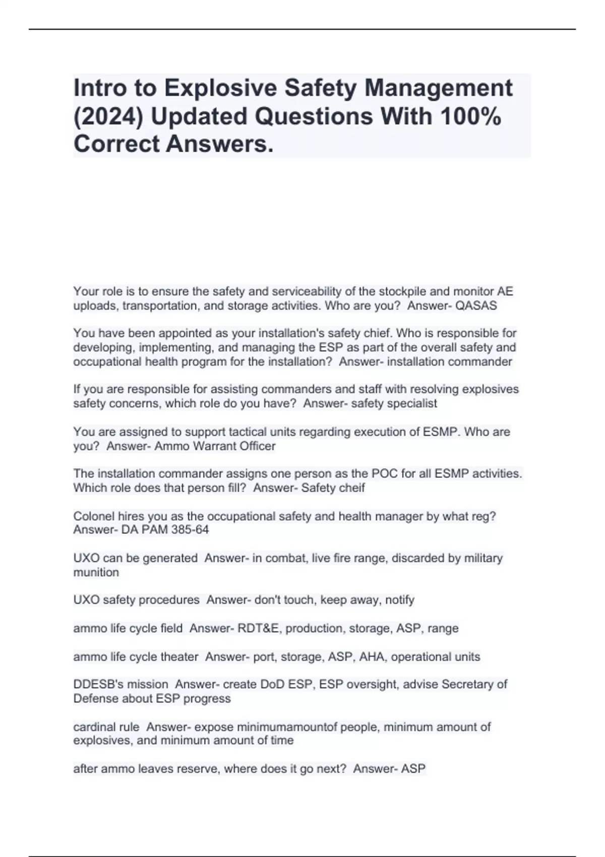 Intro to Explosive Safety Management (2024) Updated Questions With 100% Correct Answers.