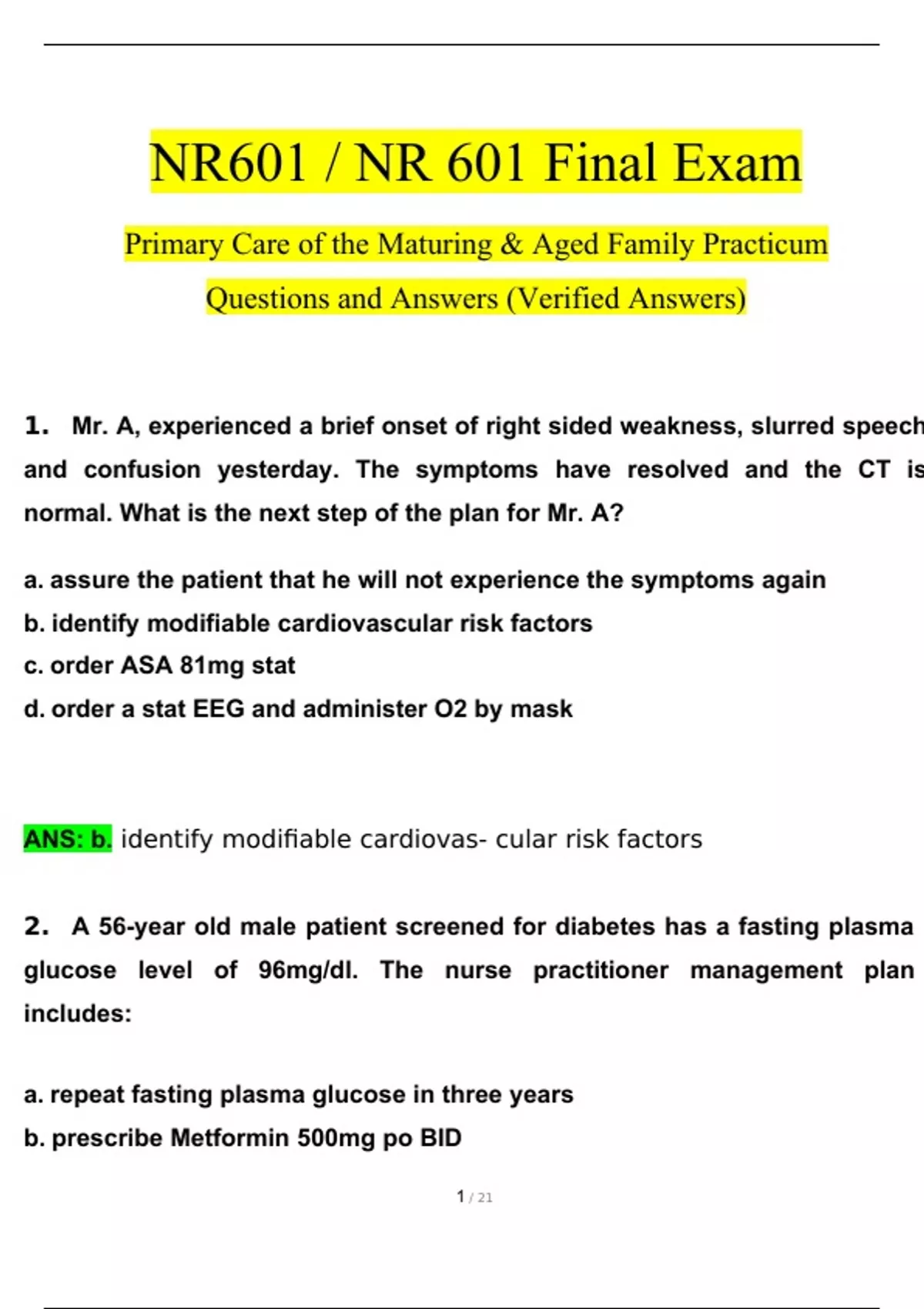 ANS: b. identify modifiable cardiovas- cular risk factors