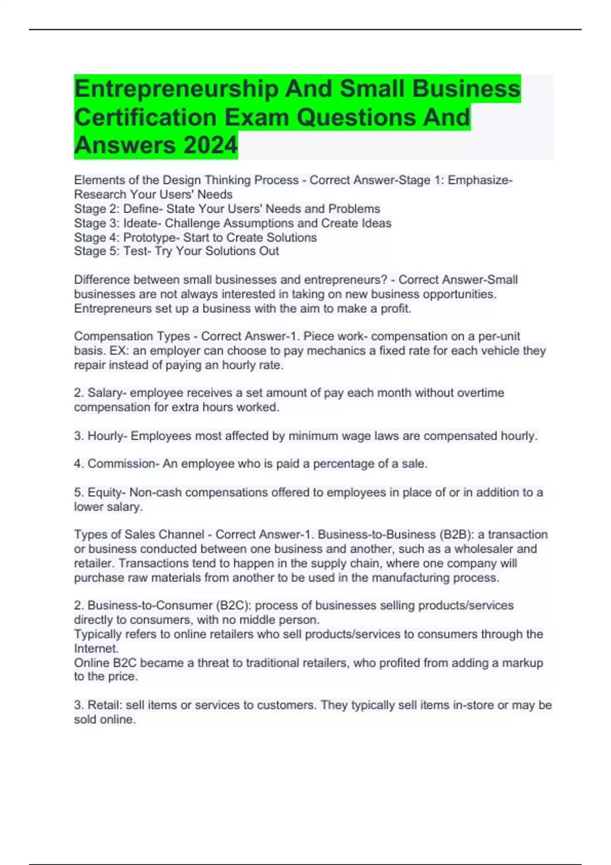 Types of Sales Channel - Correct Answer-1. Business-to-Business (B2B): a transaction