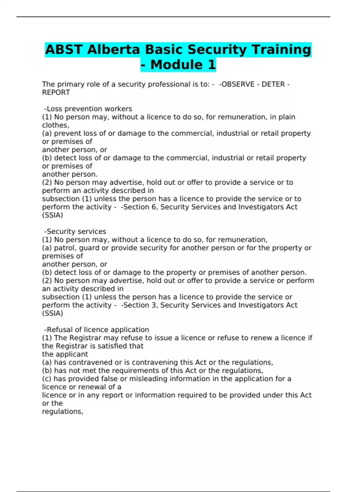 ABST Alberta Basic Security Training - Module 1
