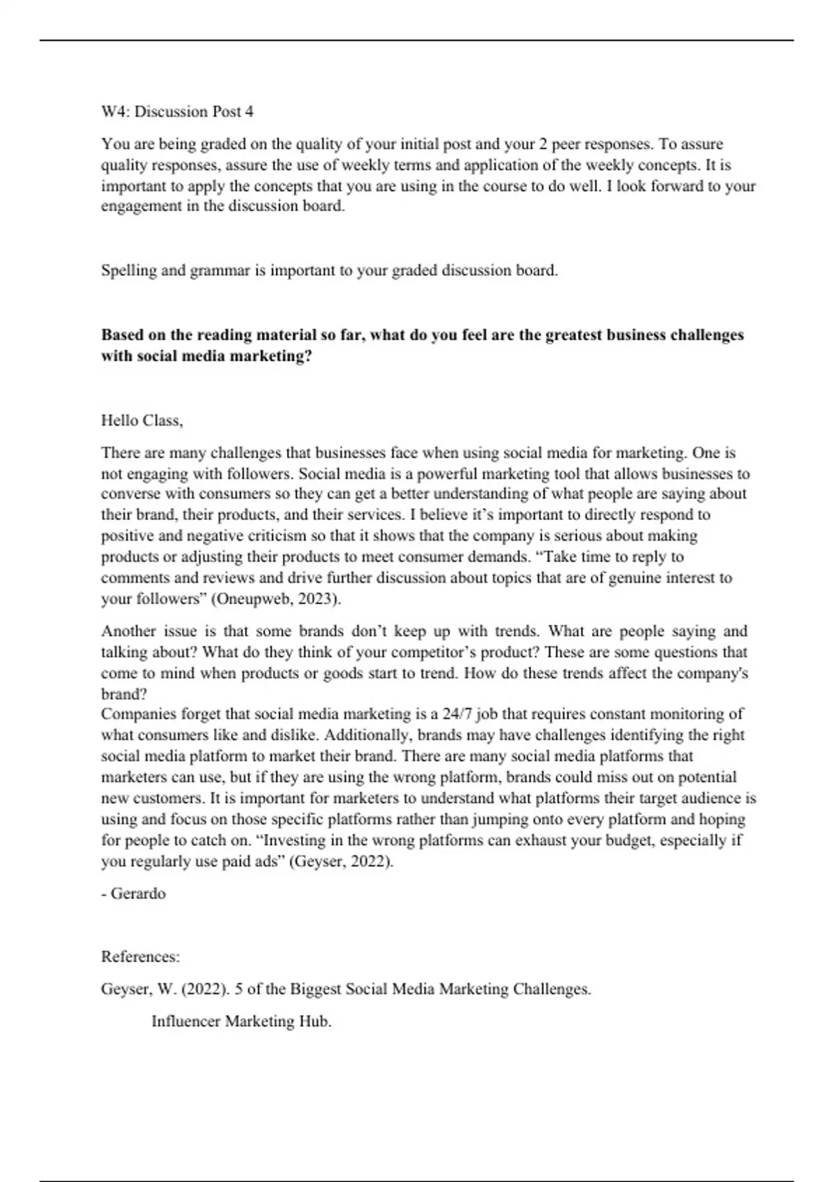 MKTG308 Week 4 Discussion; Greatest business challenges with social media marketing