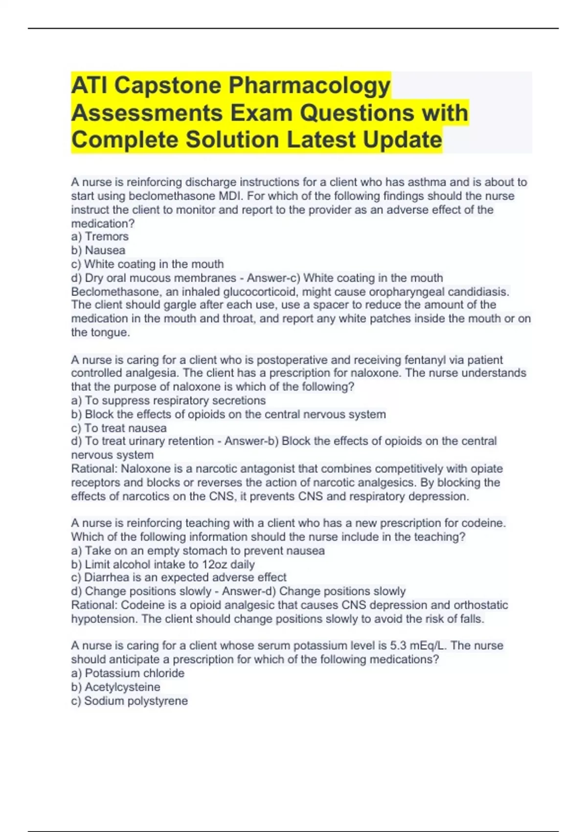 ATI Capstone Pharmacology Assessments Exam Questions with Complete Solution Latest Update