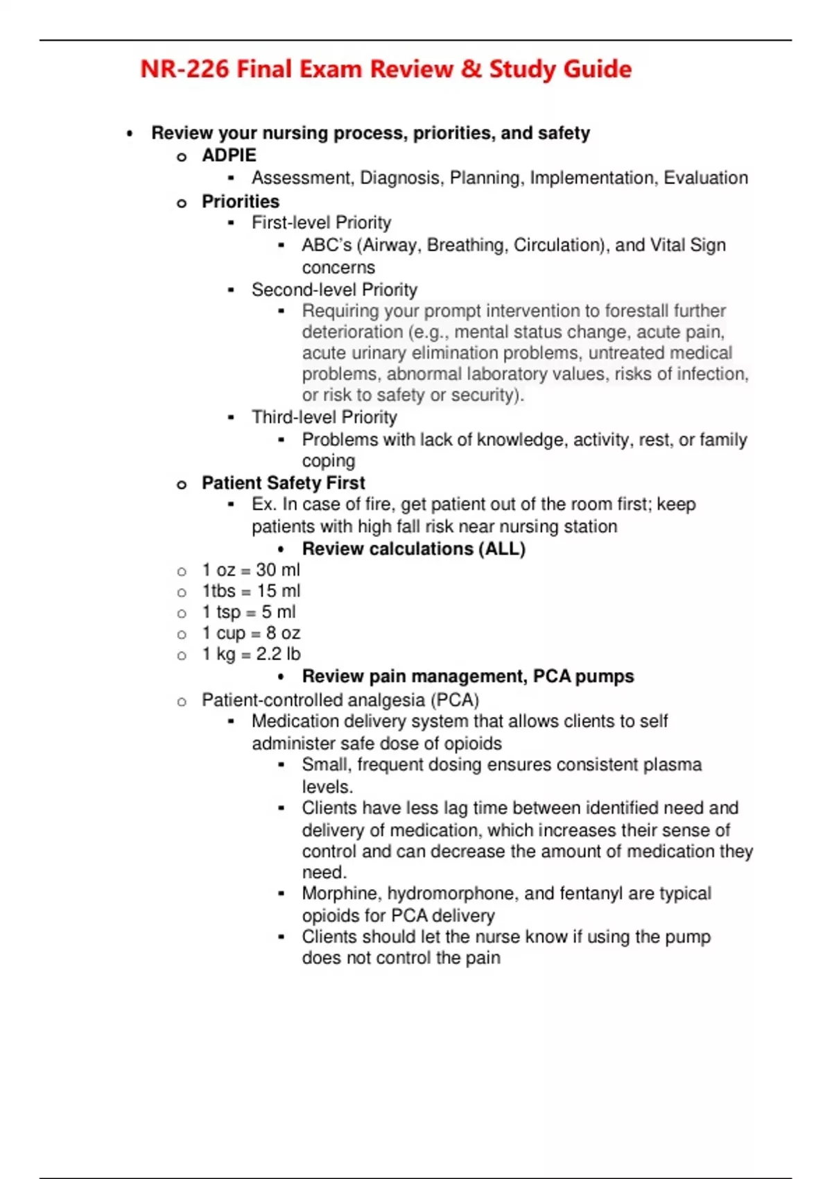 NR226 NR-226 Final Exam Review & Study Guide (Latest Update) Fundamentals [Patient Care]