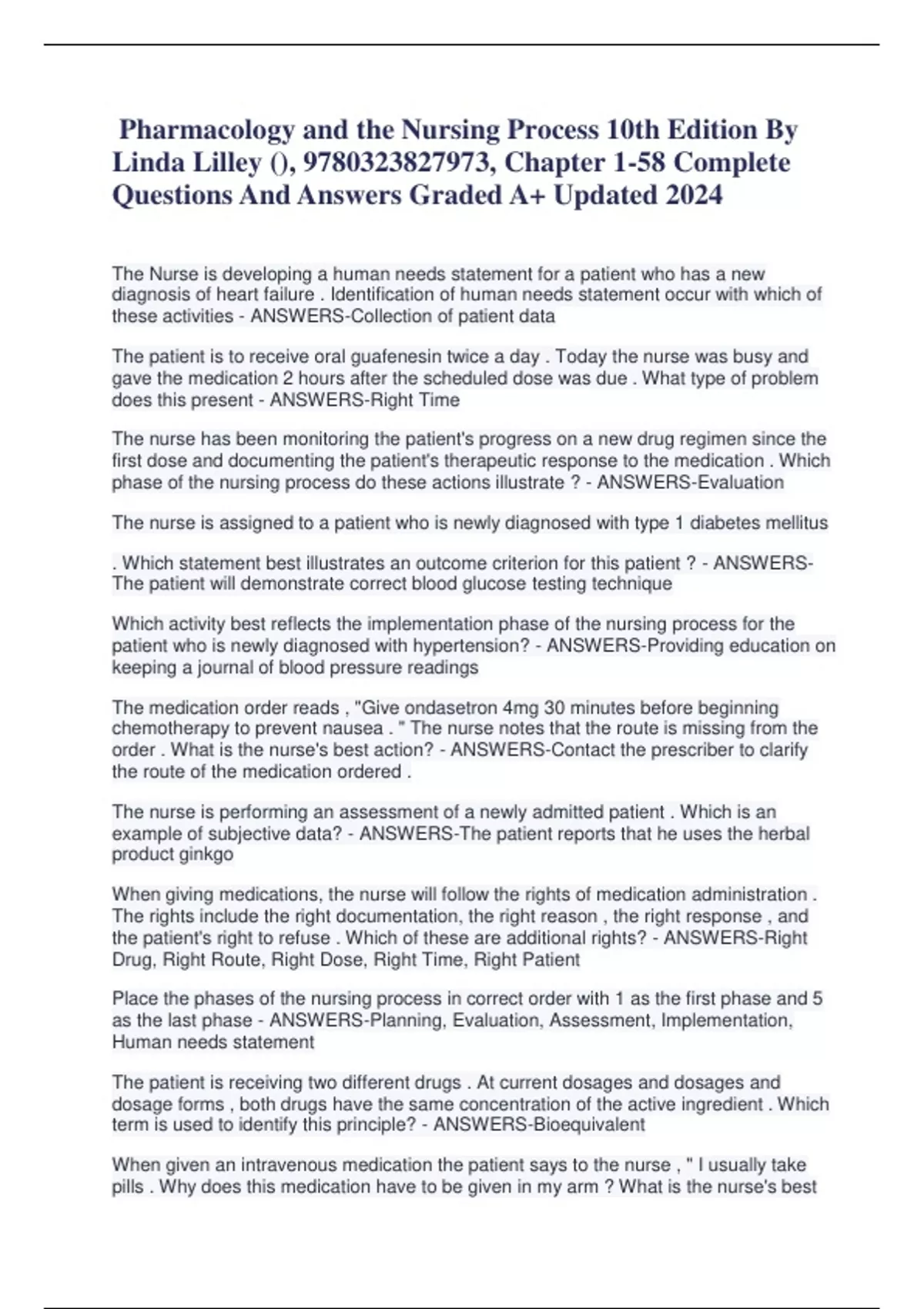 Pharmacology and the Nursing Process 10th Edition By Linda Lilley (), 9780323827973, Chapter 1-58 Complete Questions And Answers Graded A+ Updated 2024Pharmacology and the Nursing Process 10th Edition By Linda Lilley (), 9780323827973, Chapter 1-58 Complete Questions And Answers Graded A+ Updated 2024Pharmacology and the Nursing Process 10th Edition By Linda Lilley (), 9780323827973, Chapter 1-58 Complete Questions And Answers Graded A+ Updated 2024Pharmacology and the Nursing Process 10th Edition By Linda Lilley (), 9780323827973, Chapter 1-58 Complete Questions And Answers Graded A+ Updated 2024Pharmacology and the Nursing Process 10th Edition By Linda Lilley (), 9780323827973, Chapter 1-58 Complete Questions And Answers Graded A+ Updated 2024Pharmacology and the Nursing Process 10th Edition By Linda Lilley (), 9780323827973, Chapter 1-58 Complete Questions And Answers Graded A+ Updated 2024Pharmacology and the Nursing Process 10th Edition By Linda Lilley (), 9780323827973, Chapter 1-58 Complete Questions And Answers Graded A+ Updated 2024