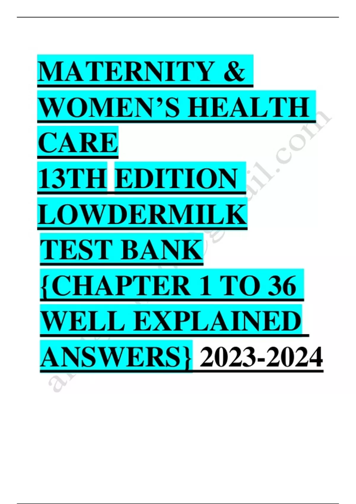 Test bank maternity women's health care 13th edition lowdermilk co Latest Update