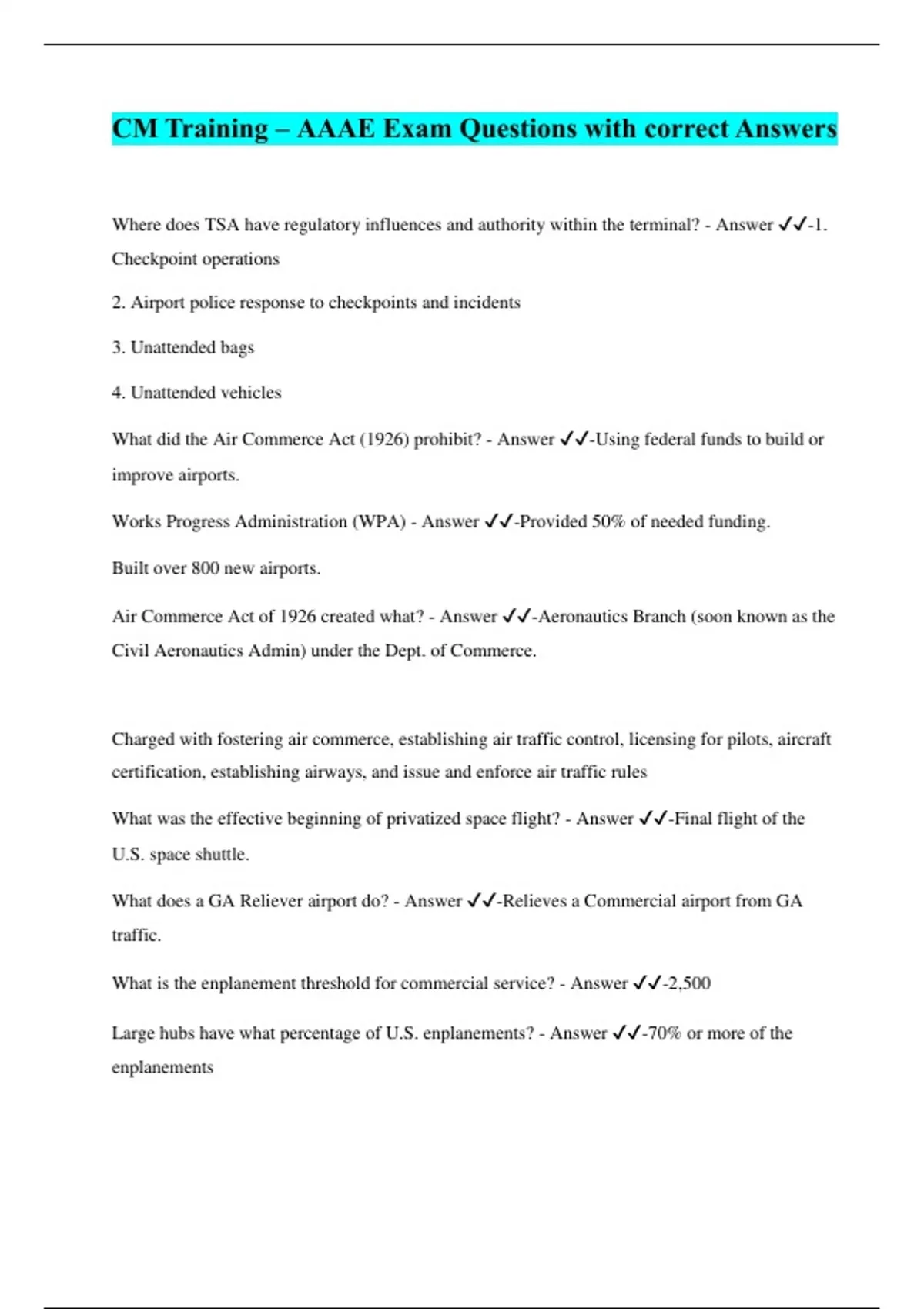 Where does TSA have regulatory influences and authority within the terminal? - Answer ️️-1. Checkpoint operations 2. Airport police response to checkpoints and incidents 3. Unattended bags 4. Unattended vehicles What did the Air Commerce Act (1926) prohibit? - Answer ️️-Using federal funds to build or improve airports. Works Progress Administration (WPA) - Answer ️️-Provided 50% of needed funding. Built over 800 new airports.