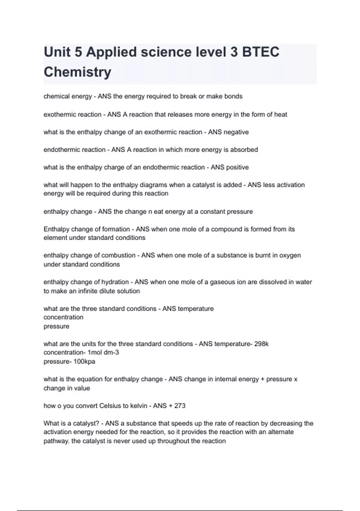 Unit 5 Applied science level 3 BTEC Chemistry Questions with correct Answers A+GRADED & VERIFIED