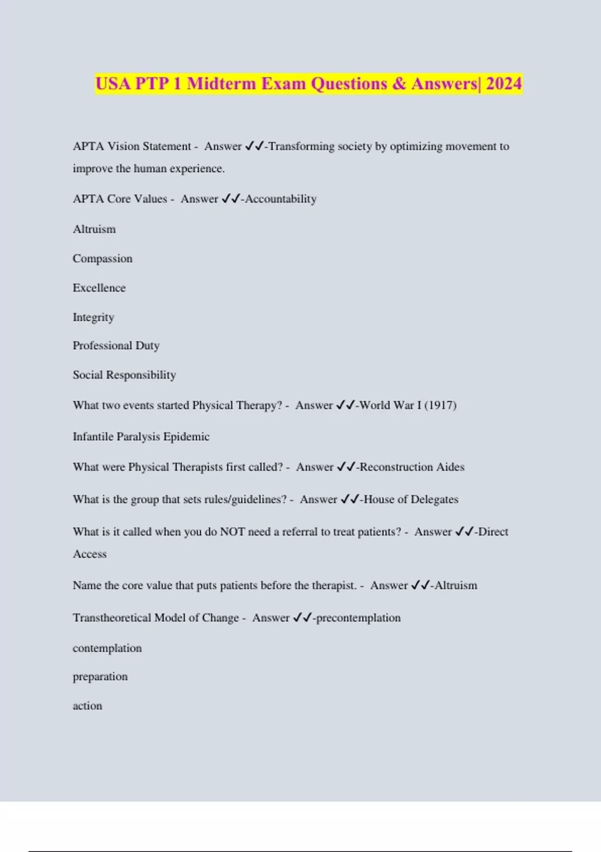 USA PTP 1 Midterm Exam Questions & Answers| 2024