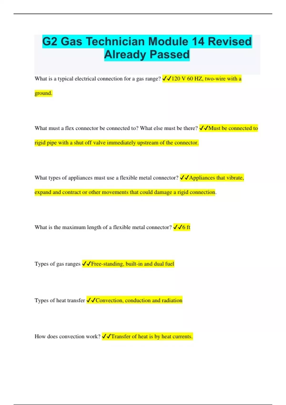 G2 Gas Technician Module 14 Revised Already Passed