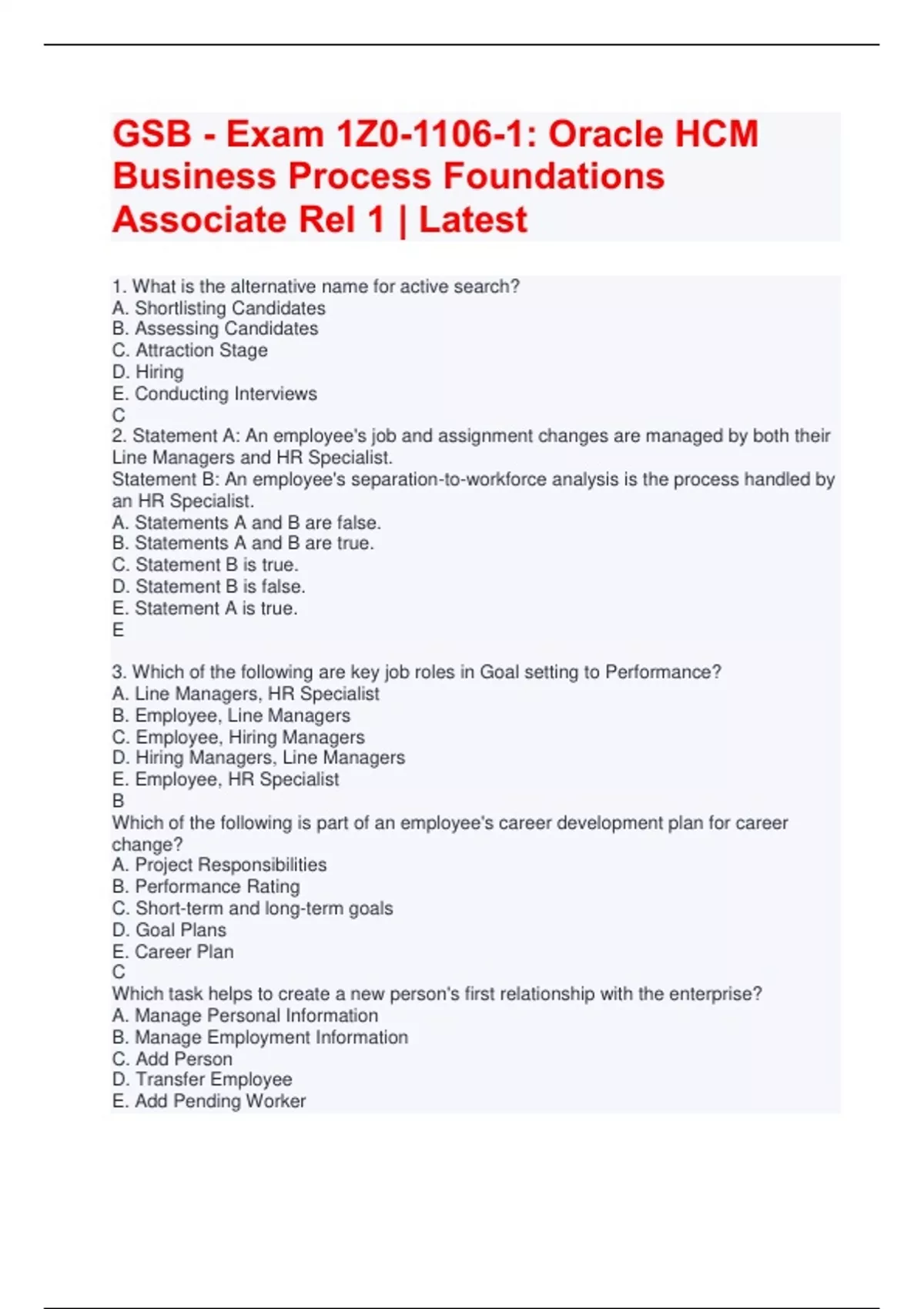 GSB - Exam 1Z0-1106-1: Oracle HCM Business Process Foundations Associate Rel 1 | Latest