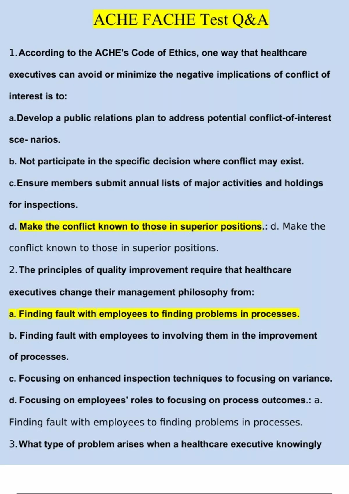 ACHE FACHE Test | Questions with 100% Correct Answers | Verified | Updated 2024