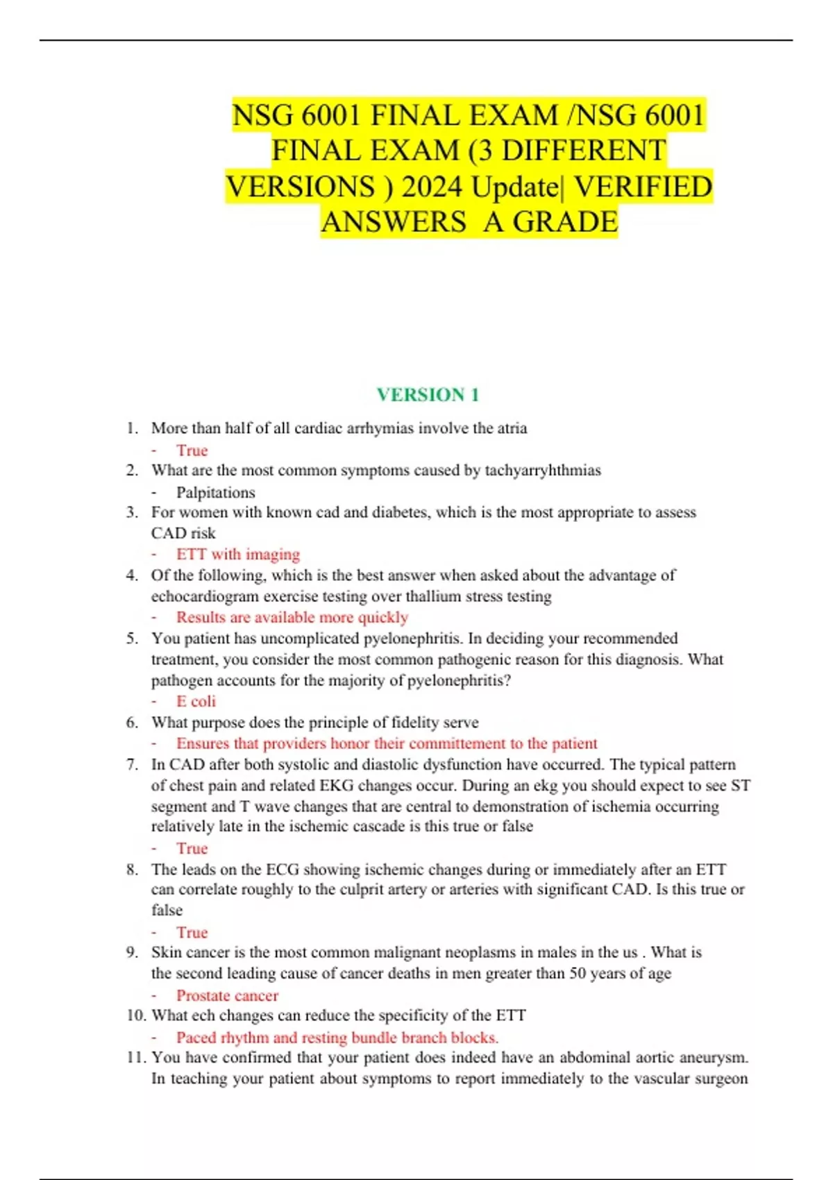 NSG 6001 FINAL EXAM /NSG 6001 FINAL EXAM (3 DIFFERENT VERSIONS ) 2024 Update| VERIFIED ANSWERS A GRADE