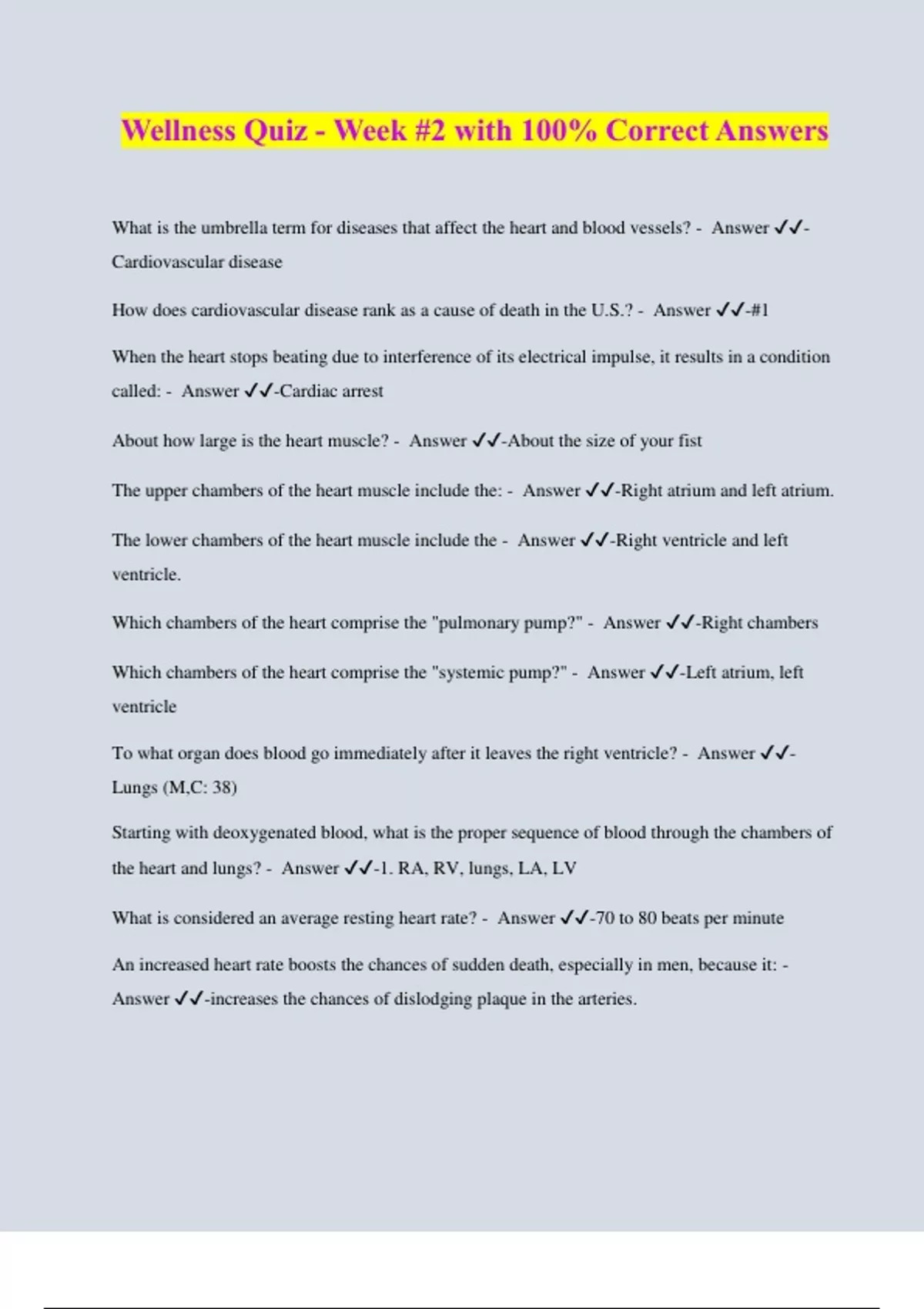 Wellness Quiz - Week #2 with 100% Correct Answers