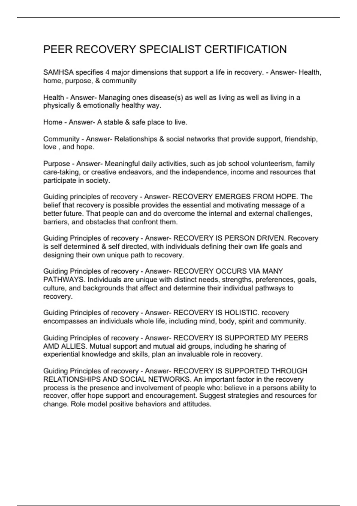 PEER RECOVERY SPECIALIST CERTIFICATION