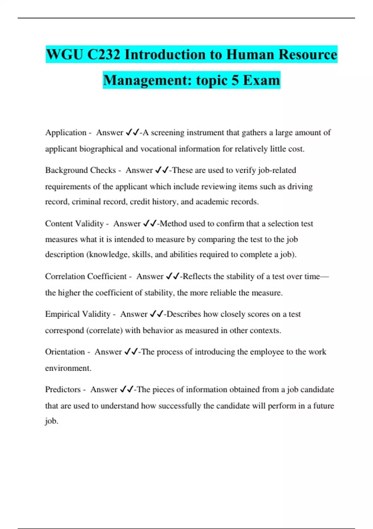 - Human Resources Management WGU C232