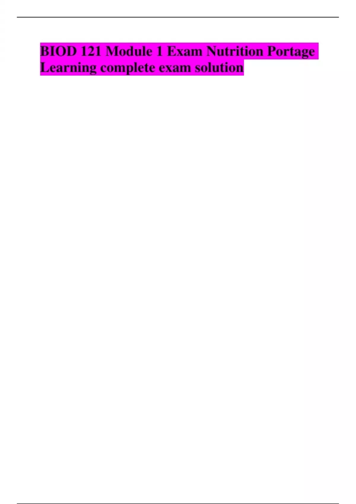 BIOD 121 Module 1 Exam Nutrition Portage Learning complete exam solution