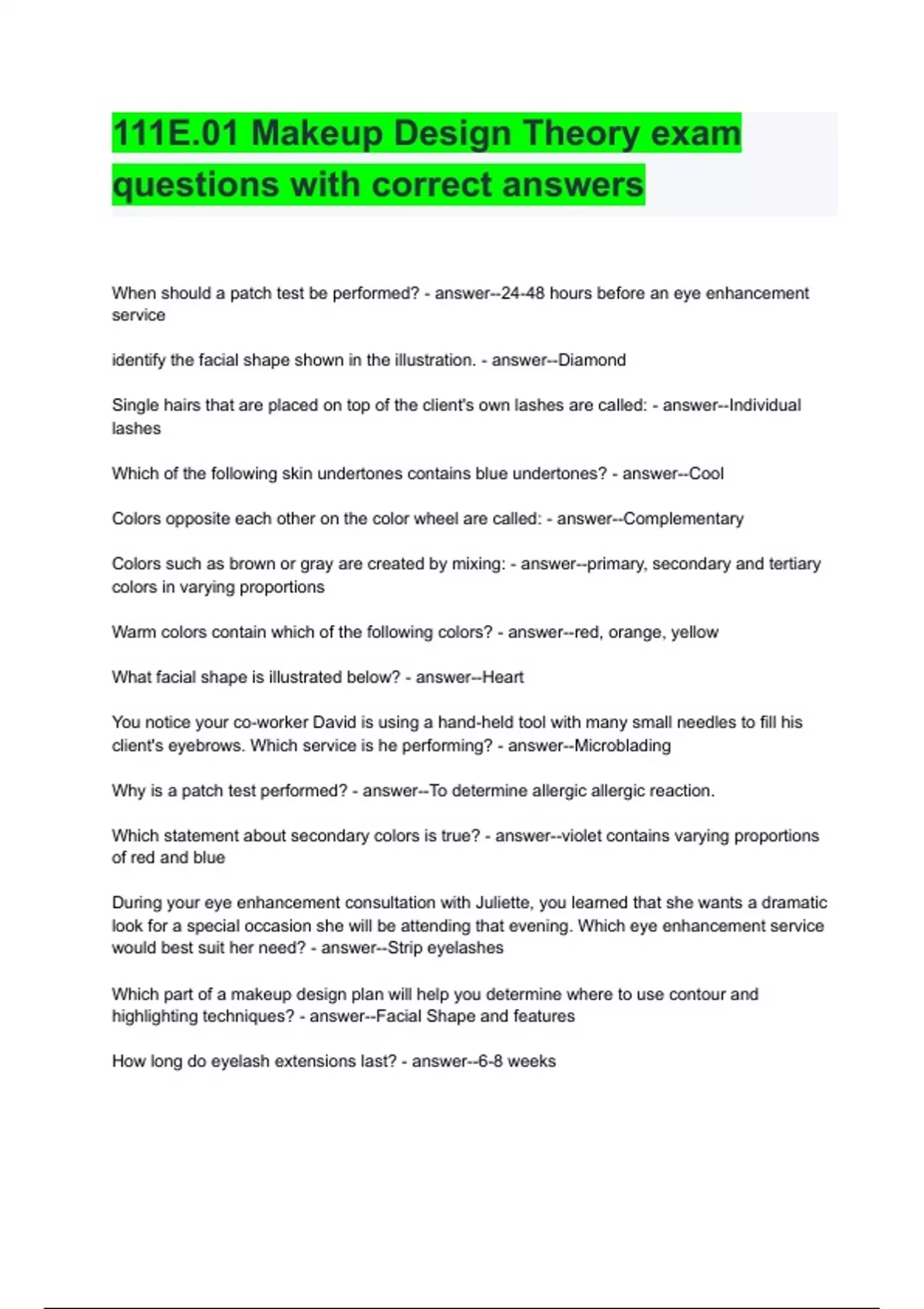 111E.01 Makeup Design Theory exam questions with correct answers