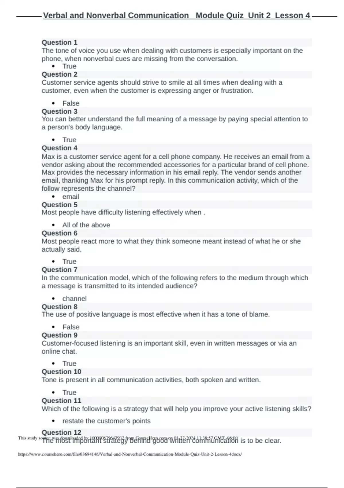 Verbal and Nonverbal Communication_Module Quiz_Unit 2_Lesson 4