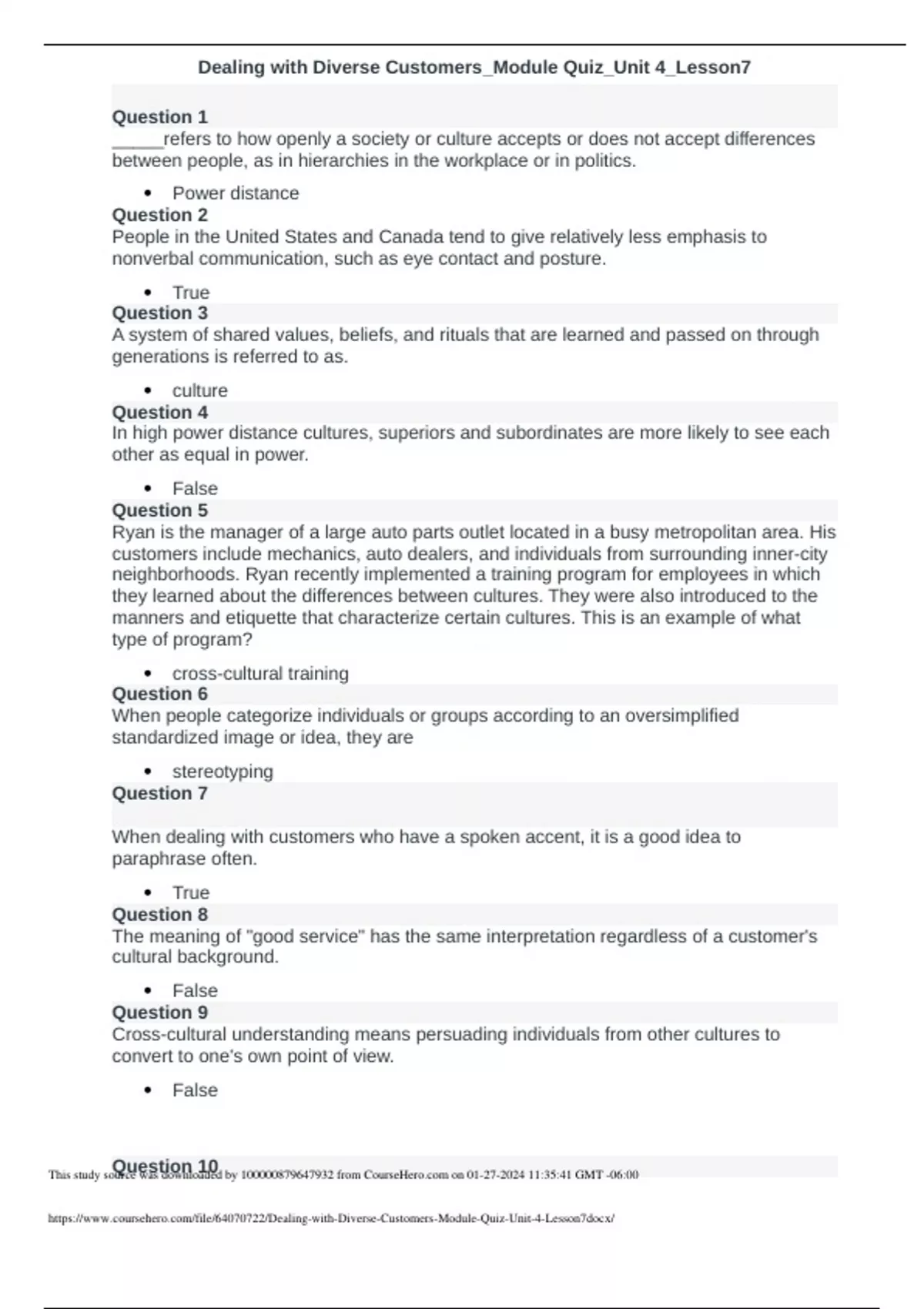 dealing with diverse customersmodule quizunit 4