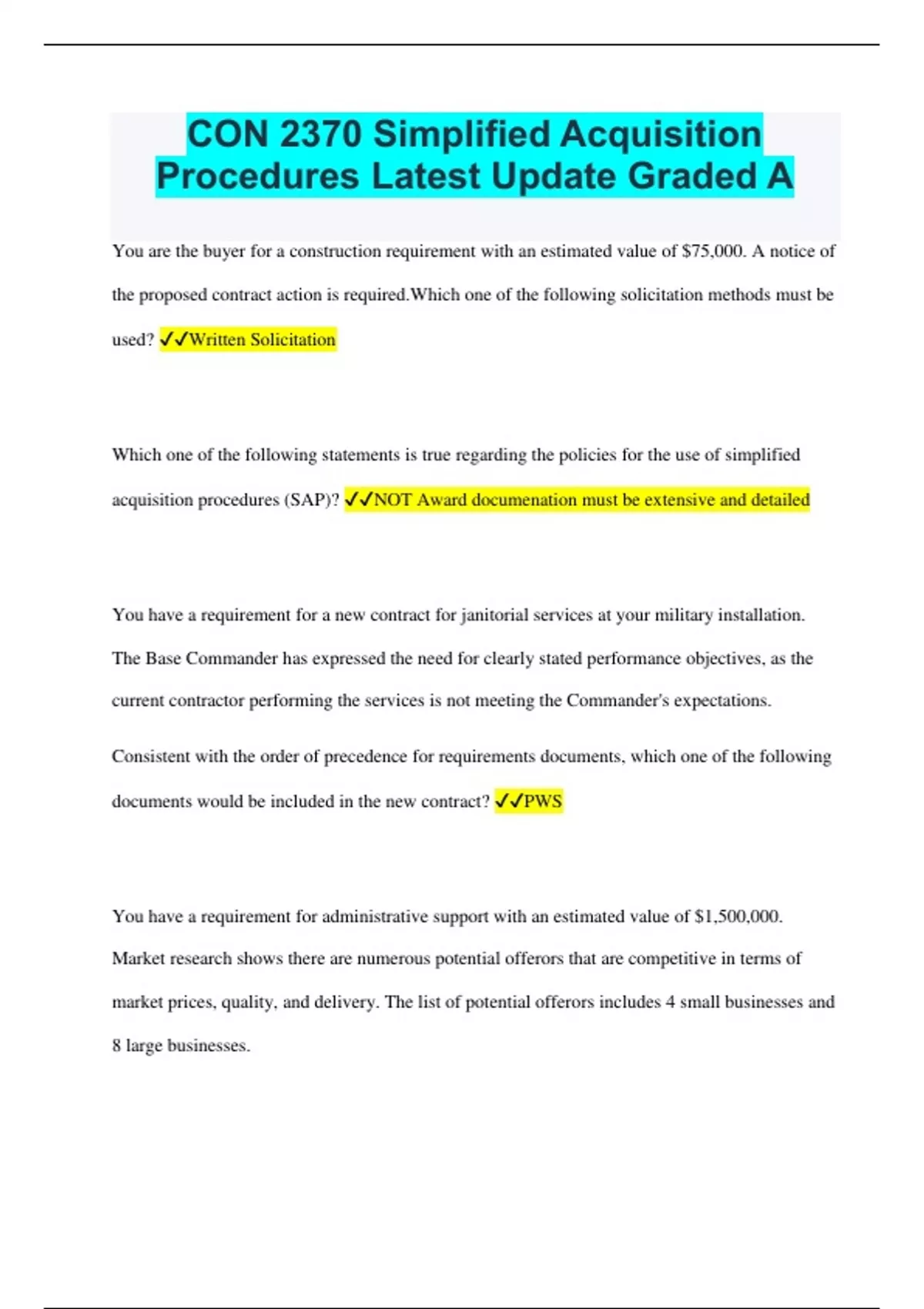 documents would be included in the new contract? ✔✔PWS