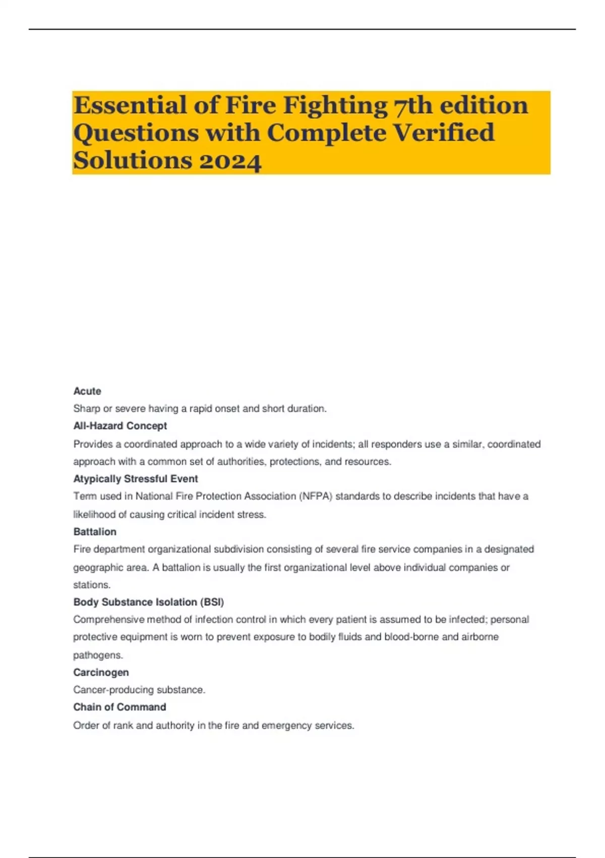 Essential of Fire Fighting 7th edition Questions with Complete Verified Solutions 2024